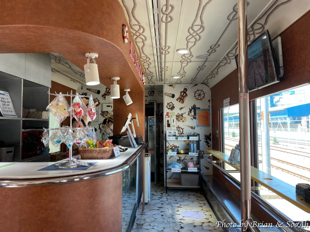 열차가 지하로 들어서서는 더 이상 밖을 내다볼 일이 없어져서는 자리를 일어나 1호차를 떠나 다른 호차로 가봤습니다. 2호차는 1호차랑 마찬가지로 바다를 바라보도록 된 2줄의 좌석으로 구성이 되어 있었고, 3호차에는 방송을 하는 부스와 가족석이 있더군요. 4호차는 1,2호차랑 비슷한 구조인데, 좌석이 더 많이 들어가서 촘촘하게 되어 있더군요.
