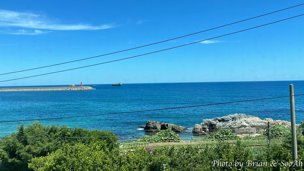 삼척해변역에서 강릉역으로 출발한 열차는 잠깐 바다를 보고는 삼척을 지나 동해역까지는 계속 시내랑 언덕들만 지나가는데요, 동해역에서 정차한 후 출발한 열차는 또 시내를 지나다가 잠깐 터널 비스무리하게 된 곳을 지나고나서는 정말 바다가 보이는, 해변을 달리는 말 그대로의 바다열차가 됩니다.