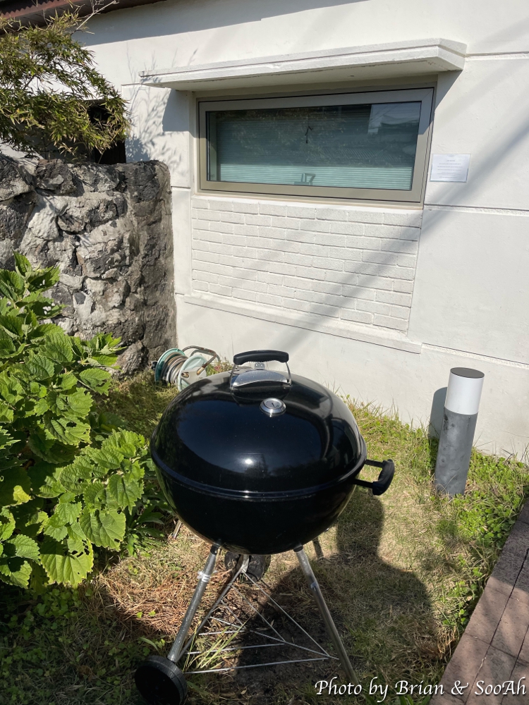 씽크대 뒤의 유리문으로 나가면 야외 바베큐를 즐길 수 있는 공간이 있더군요. 그 담장너머로는 지나가는 동네 사람들도 볼 수 있었구요.