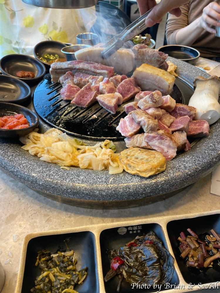 빵을 찾고 나서는 참지 못하고 차에서 먹으면서 멀지 않은 곳에 있는 숙성도 함덕점에 들렀습니다. 숙성도는 2년 전인가 아는 동생과 여행 왔을 때 동생이 알려줘서 제주 노형본점을 갔었는데, 대기가 장난이 아니어서 겨우 들어가서 먹고 나온 기억이 있는데요. 그래서 이번에 함덕점 올 때도 대기가 길까봐, 장모님까지 모시고 갔는데 기다리다 지치는 거 아닐까 걱정했는데, 다행히 오픈 시간에 맞춰 갔더니 자리가 아직 여유가 있어서... 그렇게 제주에서의 첫 끼를 흑돼지로 든든하게 배를 채웠습니다. 다들 맛있어 해서 다행이었구요.