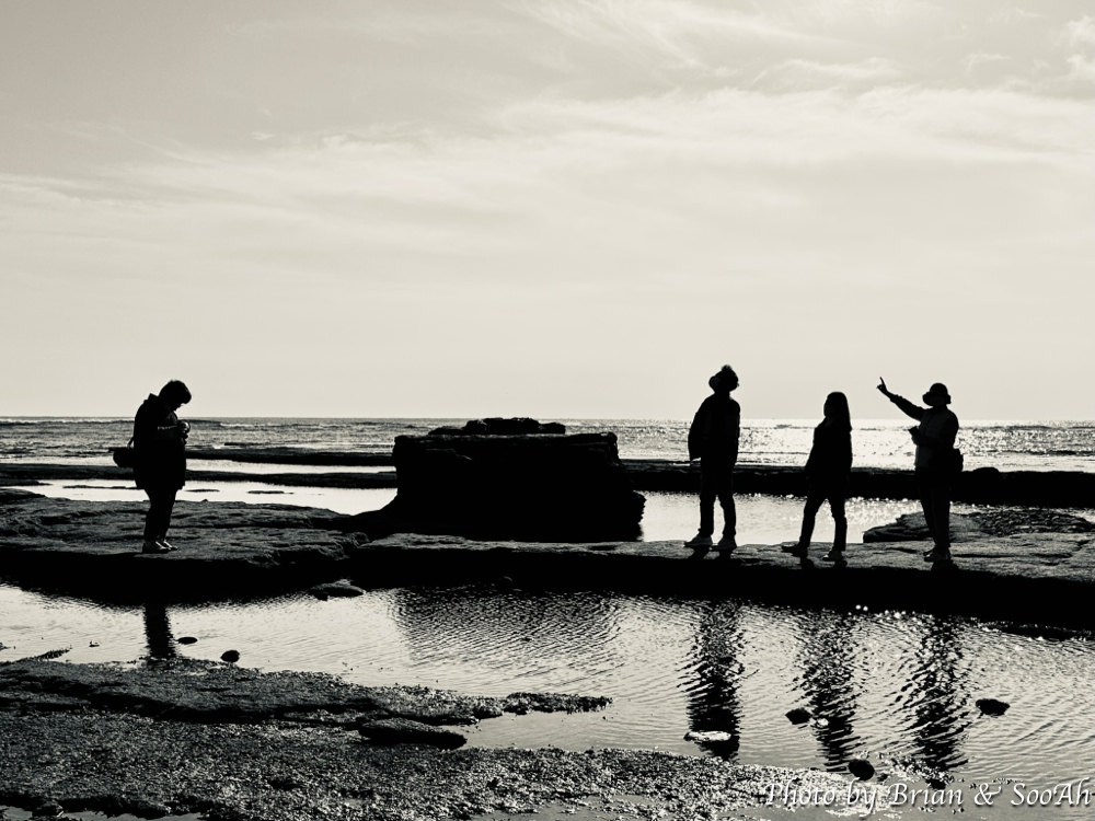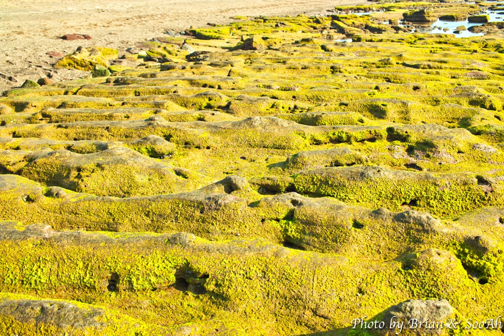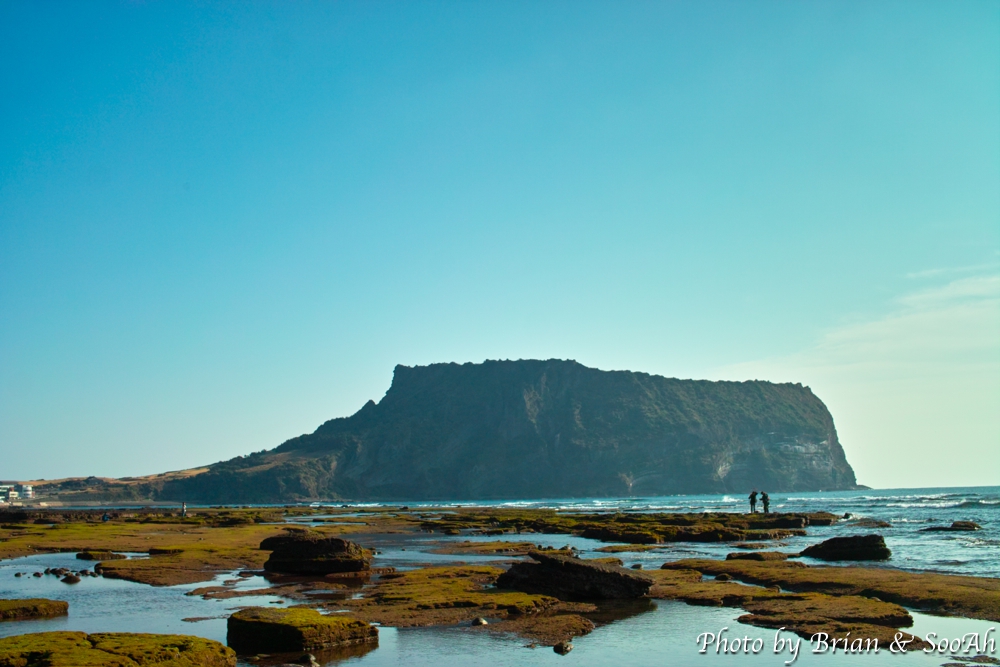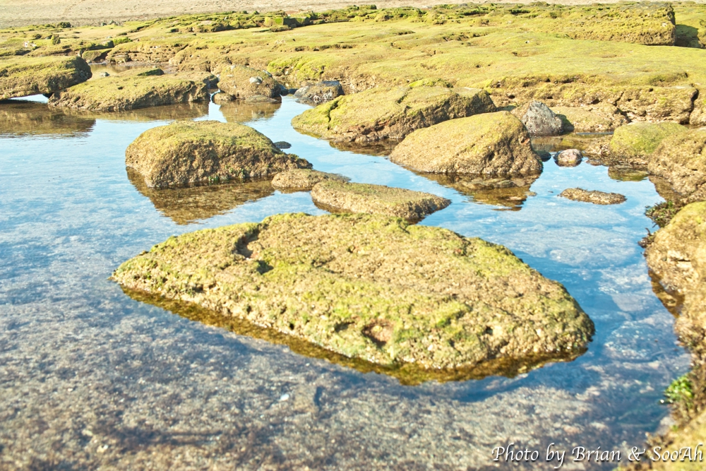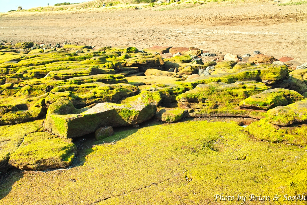 아침 일찍 숙소를 나서서 오고자 했던 곳은 썰물 때의 광치기 해변을 보기 위해서였습니다. 밀물 때에는 바닷물이 밀려와서 그냥 여느 바닷가지만, 밀물 때는 바닷물에 가려 있던 해저(?)가 드러나서는 다른 우주에 온 듯한 느낌을 주는 사진을 찍을 수 있습니다. 거기에 성산일출봉을 배경으로 사진을 찍을 수도 있구요.