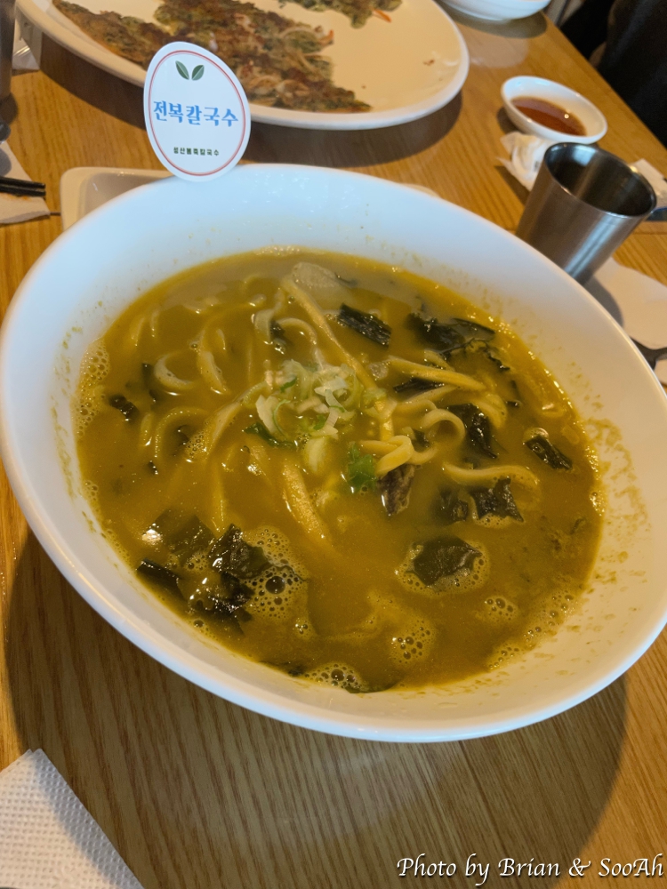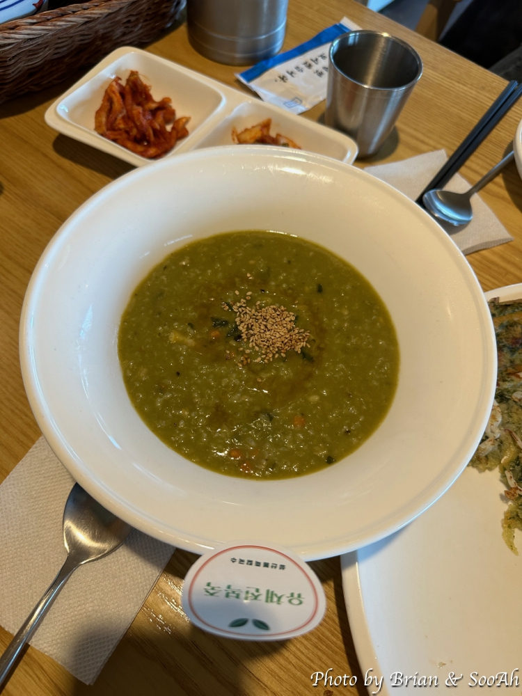 둘째날 아침에는, 제가 제주에서 본 것 중에 가장 인상에 남고 또 보고 싶고 한 곳으로 가기 위해서 좀 일찍이 숙소를 나섰습니다. 아침 일찍 연 식당이 많지 않았지만, 해안도로를 따라서 가다 보니 성산일출봉과 우도가 보이는 바닷가에 '성산봄죽칼국수'라는 곳에서 제주만의 죽과 칼국수로 속을 따뜻하게 만들었습니다.