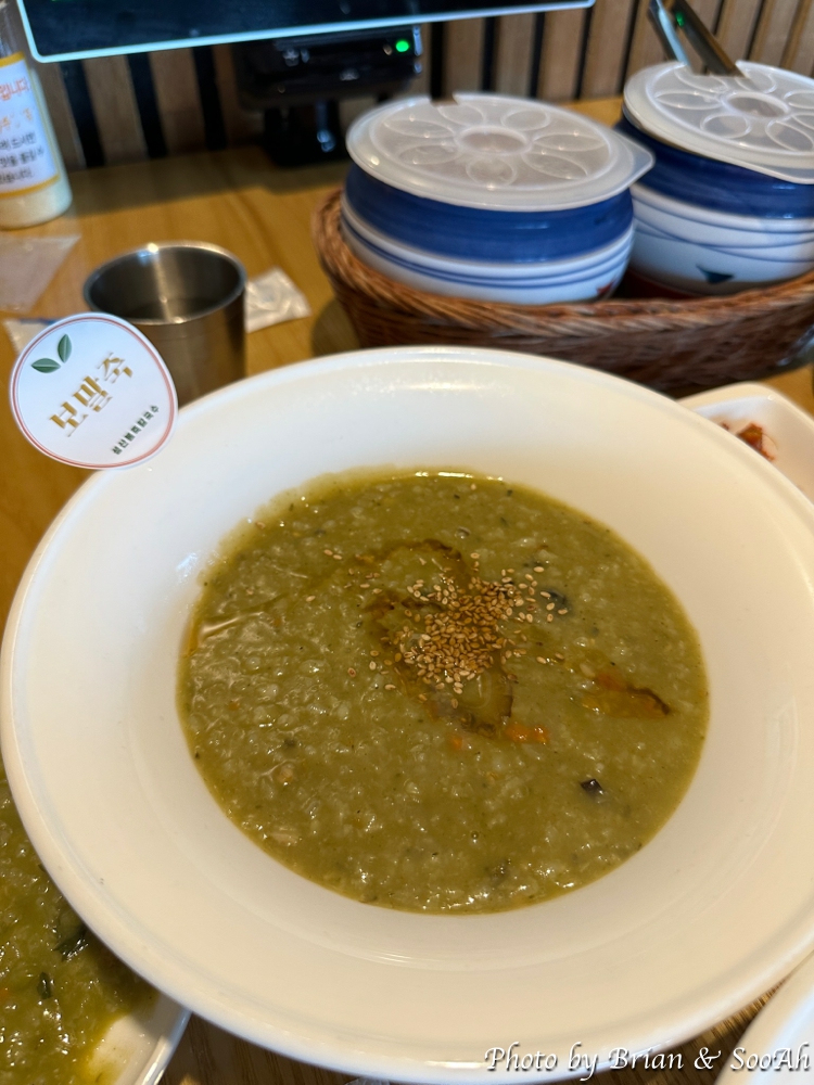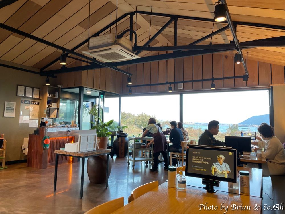 둘째날 아침에는, 제가 제주에서 본 것 중에 가장 인상에 남고 또 보고 싶고 한 곳으로 가기 위해서 좀 일찍이 숙소를 나섰습니다. 아침 일찍 연 식당이 많지 않았지만, 해안도로를 따라서 가다 보니 성산일출봉과 우도가 보이는 바닷가에 '성산봄죽칼국수'라는 곳에서 제주만의 죽과 칼국수로 속을 따뜻하게 만들었습니다.