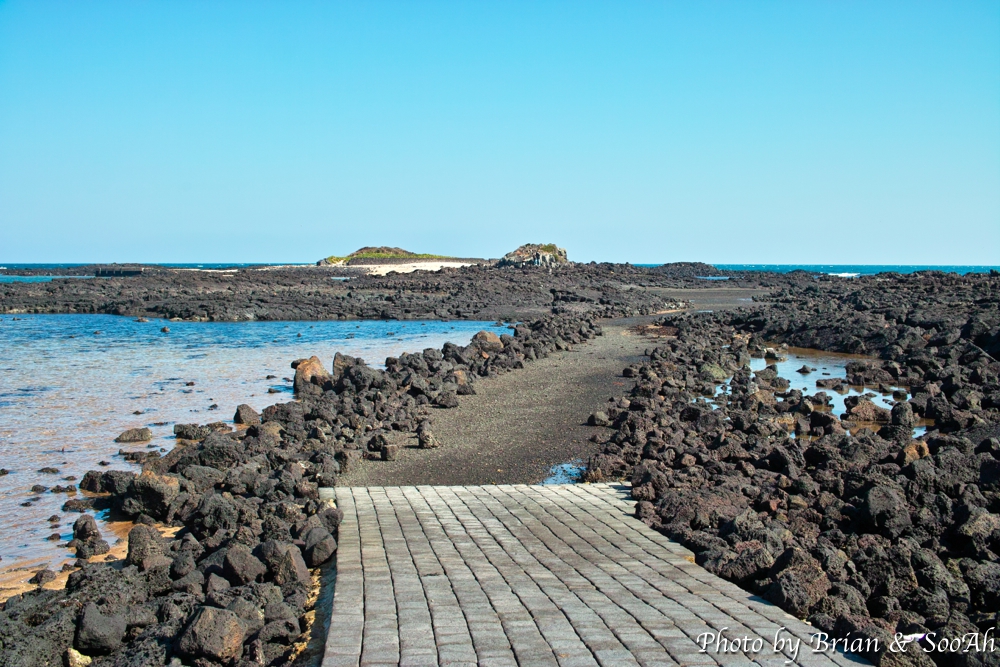 거기서 또 해맞이해안도로를 따라 올라가다가, 지난 번에는 쳐다보기만 한 토끼섬을 이번에는 썰물 시간이니 혹시 들어갈 수 있을까 싶어 근처에 차를 잠깐 세우고 봤는데.... 날쌘 마나느님과 손위처남댁 부부는 그새 그 물이 빠진 진입로를 걸어서는 토끼섬 바로 앞까지 가 버리더군요. 그래서 장모님과 저는 어쩔 수 없이 밖에서 기다려야 했다는....