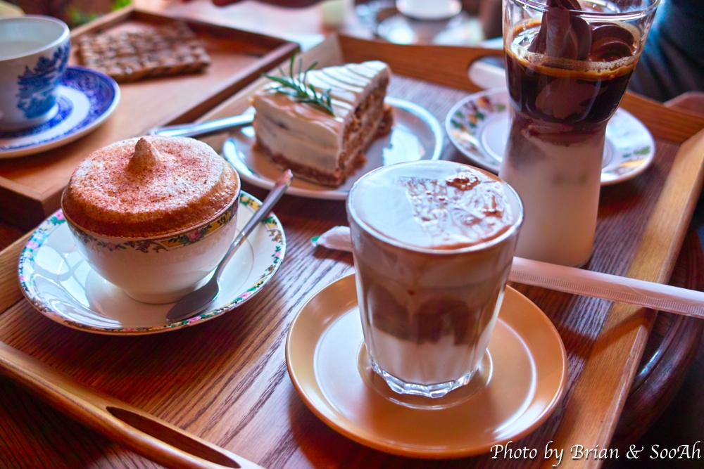 카페 내부도 양쪽 끝으로는 계단으로 올라가는 복층 구조였고, 1층도 나름 공간도 있고 자리나 창문 분위기까지 유럽 고저택 생각이 나게 하더군요. 창가에 자리를 잡고는 카페의 시그니쳐 메뉴라고 하는 몇 가지를 시켜 나눠 마셔보고.... 또 군밤도 시켜서 나눠 먹으며 이번 여행의 마지막 카페인 채우기를 마쳤습니다.