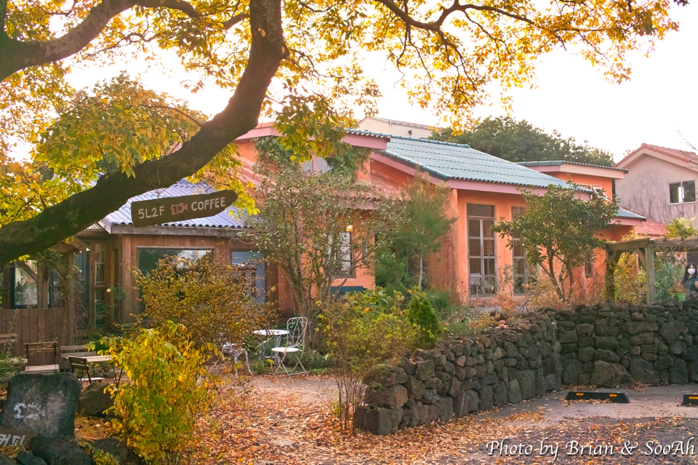 산굼부리에서 약 2시간 정도 걷고 바람도 쐬고 하다 보니 또 카페인이 떨어져서, 제주 공항으로 가는 길에 조천 중산간에 있는 예쁘기로 유명한 '5L2F'라는 카페에 들렀습니다. 나름 산간 어느메의 구비구비 길을 들어갔더니, 밖에서 봤을 때도, '헨젤과 그레텔'의 과자집이 생각날 정도로 아기자기한 카페 건물이 나오더군요.