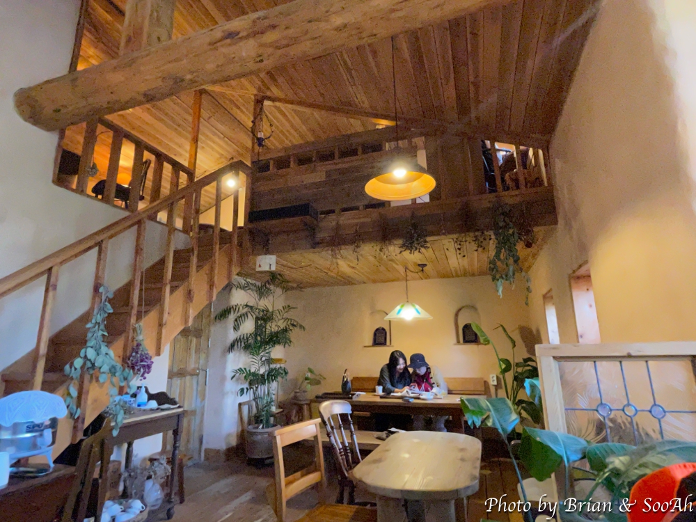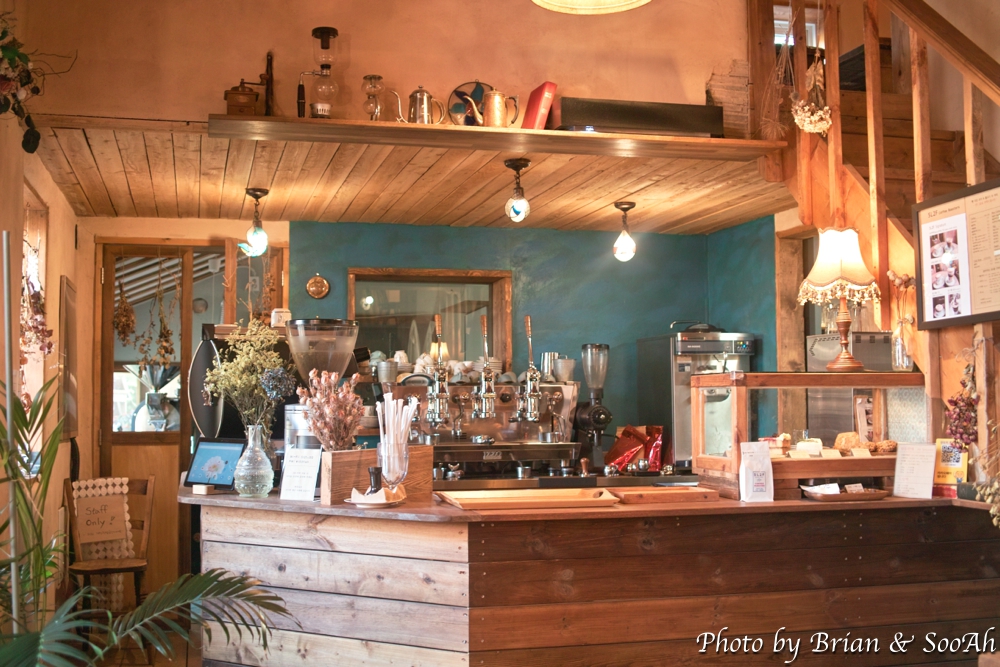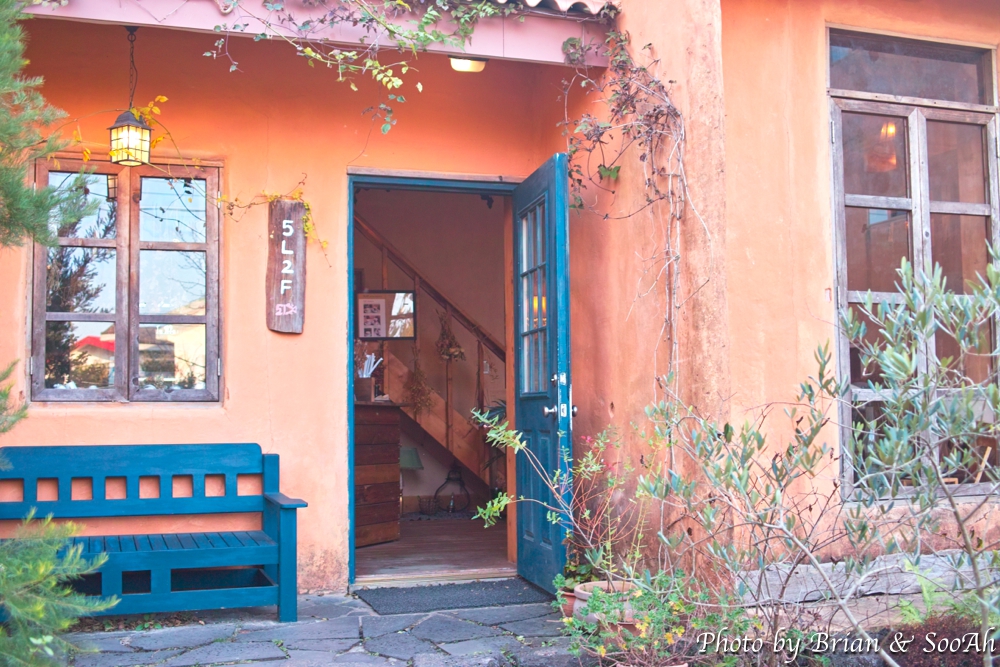 산굼부리에서 약 2시간 정도 걷고 바람도 쐬고 하다 보니 또 카페인이 떨어져서, 제주 공항으로 가는 길에 조천 중산간에 있는 예쁘기로 유명한 '5L2F'라는 카페에 들렀습니다. 나름 산간 어느메의 구비구비 길을 들어갔더니, 밖에서 봤을 때도, '헨젤과 그레텔'의 과자집이 생각날 정도로 아기자기한 카페 건물이 나오더군요.