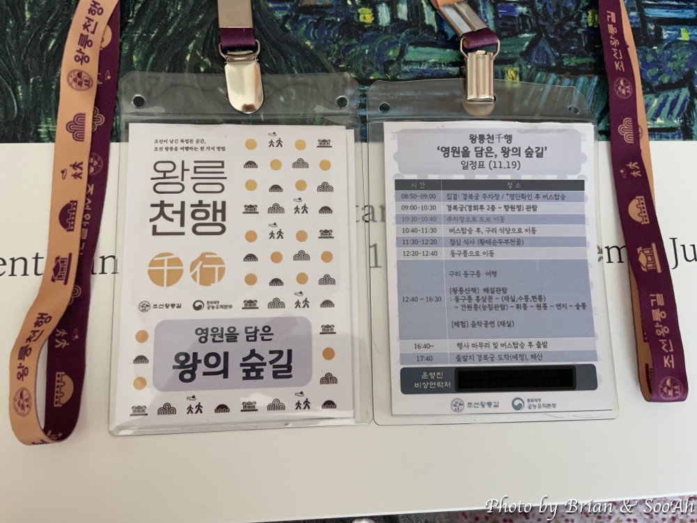 해당 행사가 이전 글에도 소개했는지 가물가물하지만, 총 5개의 프로그램이 있는데, 집 앞인 융건릉을 가는 '정조의 길'은 뭐 혼자 가보기도 했고, 가장 가고 싶었던 장릉을 다녀오는 '단종의 길'도 다녀오고 나니, 남은 3개 중에 어느 걸 추가로 신청할까 하다가 왕릉의 주인에 대한 호감도를 따져 보니 고종이나 영조보다는 태조가 그나마 나은 듯 해서 건원릉이 있는 구리 동구릉을 가는 '왕의 숲길' 행사를 22년 후반기 2차 때 추가로 신청을 해서는 예매 성공해서는 다녀오게 되었습니다.