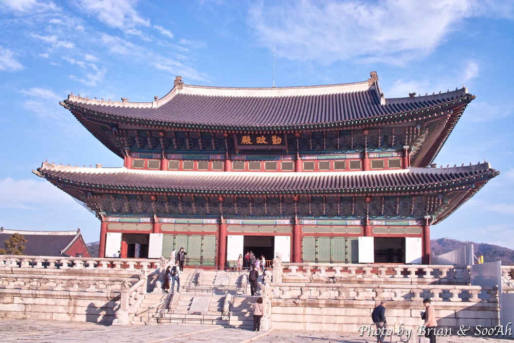경복궁의 최초 건립에 대한 이야기를 안내 받으며, 경복궁을 입장하면 만날 수 밖에 없는 근정전을 잠시 구경하며 안내를 받고는, 그 다음은 경회루로 이동했습니다.