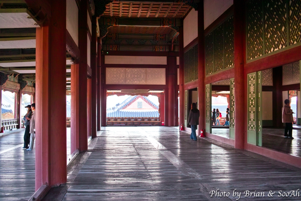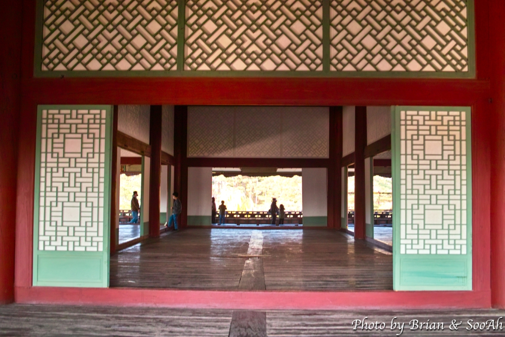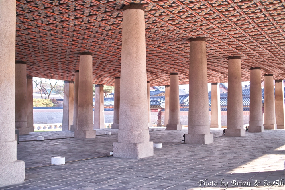 보통은 경복궁 홈페이지에서 하루 3번 정도 운영되는 경회루 내부 투어 프로그램을 예약해야지만 들어갈 수 있는 걸, 이 '왕릉천행' 행사에서는 경회루를 인공호수 건너서 보는 게 아니라, 직접 들어가서는 경회루 누각 위까지 올라가서는 구경할 수 있었습니다. 내용 설명이나 이런 부분은 개인적으로는 별도로 '경회루 내부관람'을 예약해서 들은 적이 있어서, 이번에는 지난 번에 사진이 잘 찍혔던 자리들을 떠올리면서 열심히 사진 찍는데 (^^) 할애했네요.