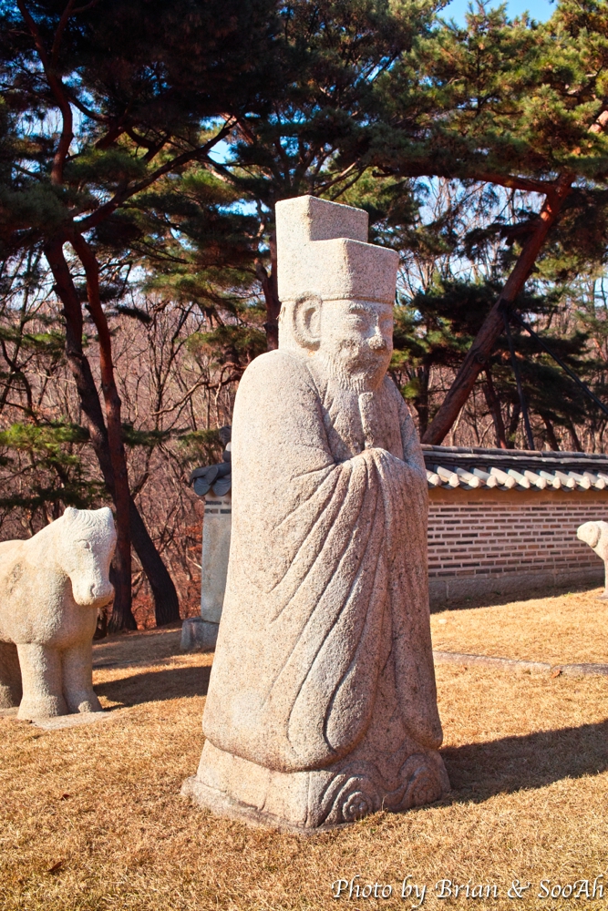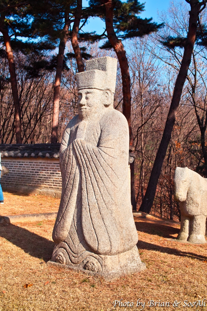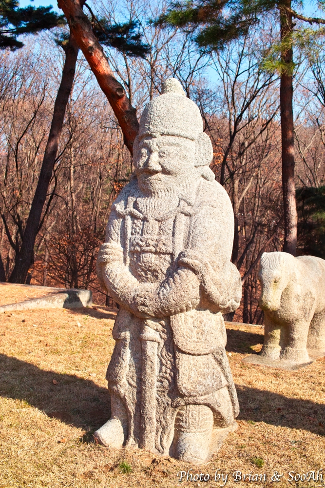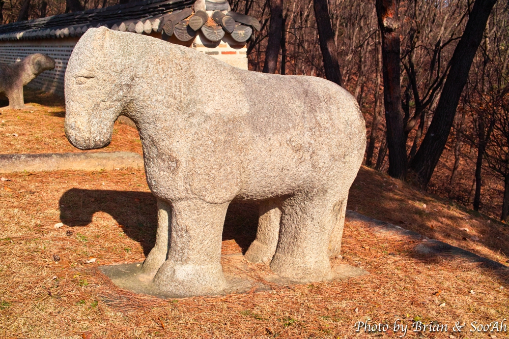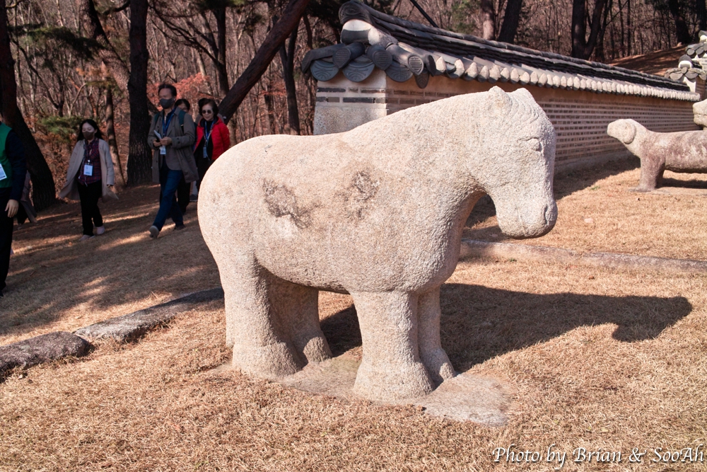 능 앞에는 돌아가신 능의 주인을 모시는 문인과 무인 석상 그리고 이들을 수행하는 석마(돌로 만든 말)이 봉행을 하고 있는 형태로 세워져 있더군요.