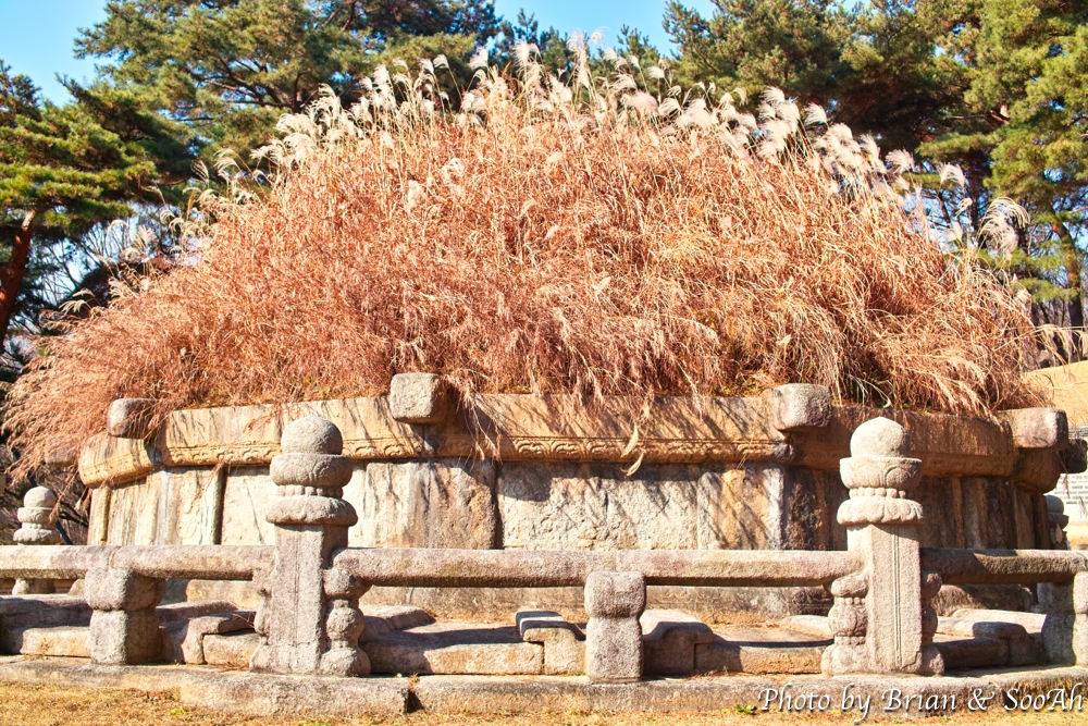 언덕길을 한 5~10분 정도 올라가니, 억새풀이 가득한 능 1기가 있었는데 이게 바로 건원릉이었습니다. 아들 태종 이방원 때문에 원했던 신덕왕후와 함께 묻히지 못하고 이렇게 따로 단릉으로 묻히게 되고, 근데 또 아버지를 위해서라며 함흥에서 억새풀을 가져다가 묘에 심어 준 바람에, 다른 능과는 달리 억새풀이 자라 있는 능이 되어 버렸지요.