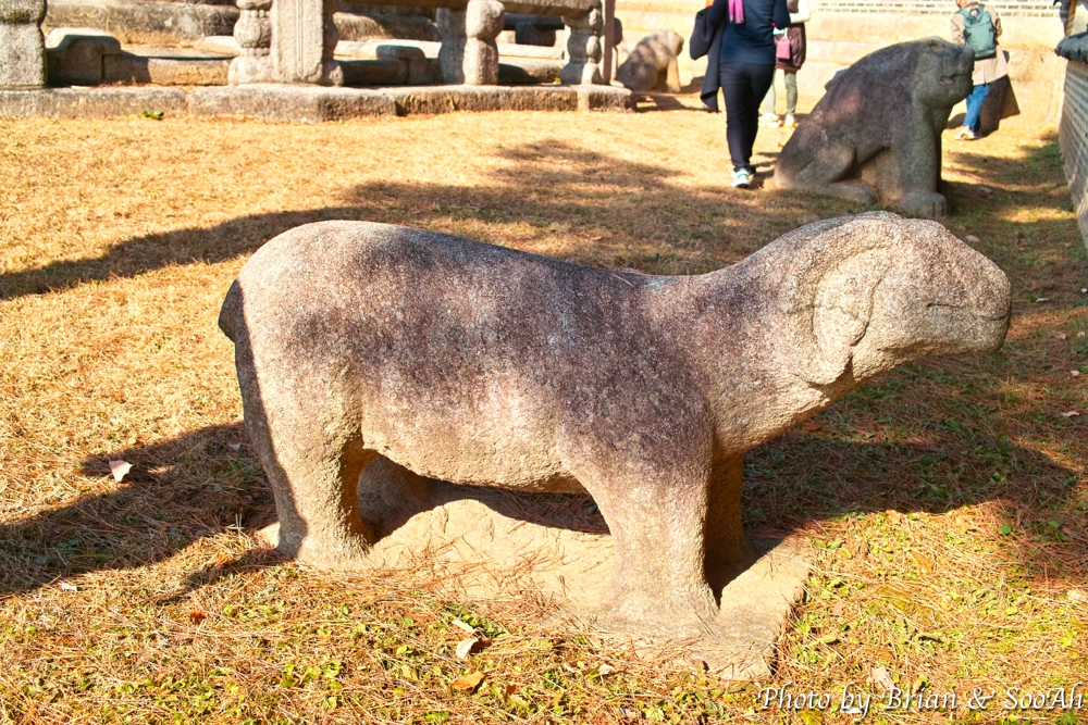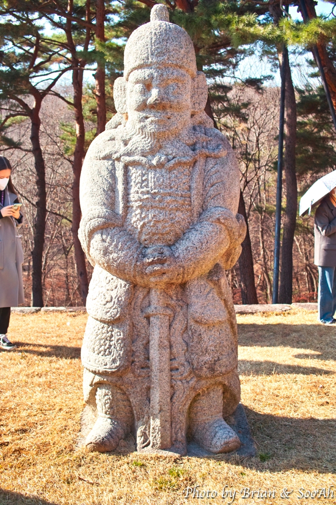능 앞에는 돌아가신 능의 주인을 모시는 문인과 무인 석상 그리고 이들을 수행하는 석마(돌로 만든 말)이 봉행을 하고 있는 형태로 세워져 있더군요.