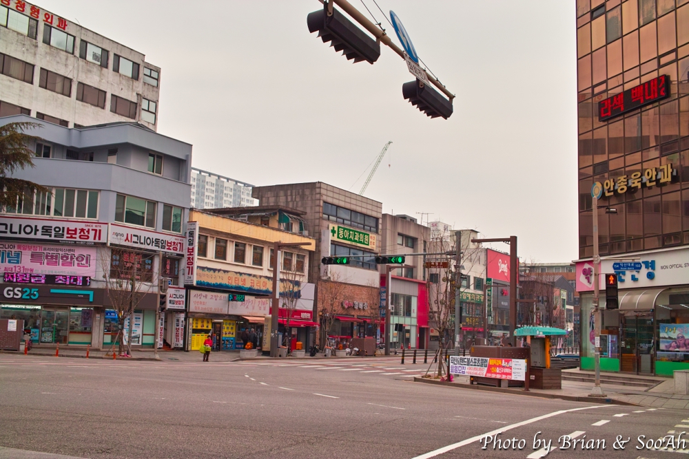 서해금빛열차를 타고 3시간을 달려서는 종착역이자 여행 목적지인 익산에 도착했습니다. 익산역 광장으로 나오니 바로 앞에 여느 도시에나 볼 수 있는 삼거리가 나오더군요 (^^) 뭔가 정겨운 모습이라 날은 흐리고, 미세먼지가 심한 날이었지만 기분은 좋아졌습니다. 근처에서 익산을 돌아다니는 반나절 동안 쓸 자동차를 픽업해서는 일단 먼저 식사를 하러 이동했습니다.