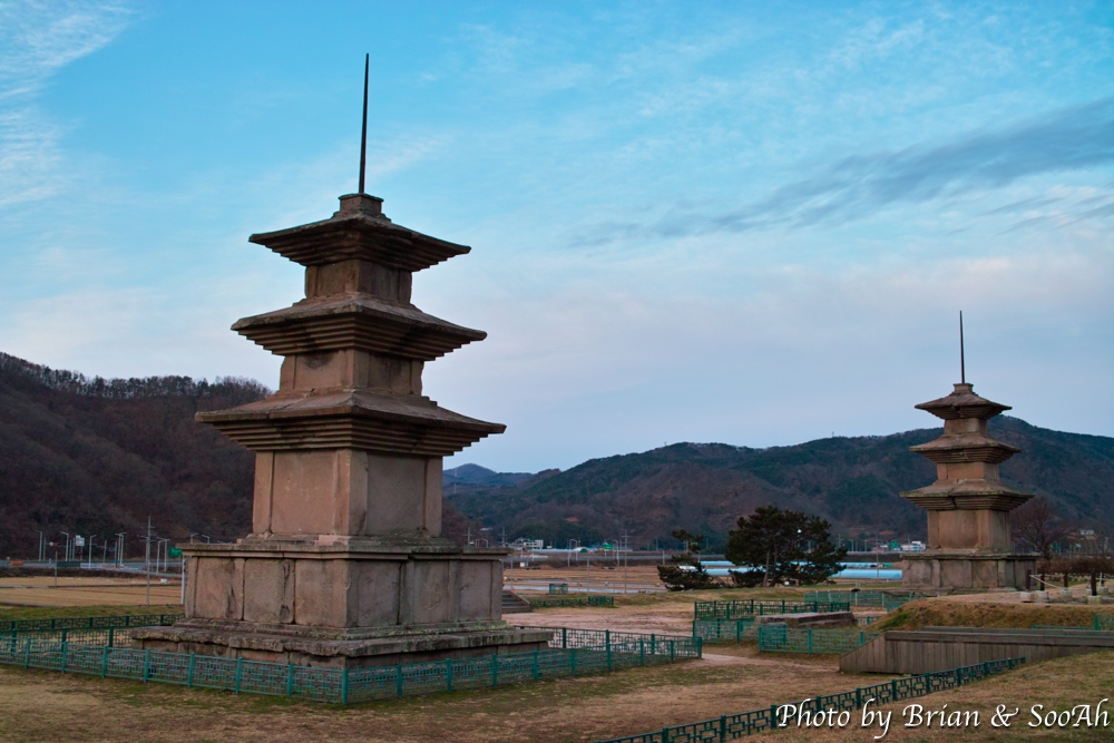 문무대왕릉에서 한 3~40분 정도 바들바들 떨면서 일출 보기에 실패하고 나서는 일단 다시 경주 시내로 돌아가서 식사를 하기로 하고는 방향을 돌렸습니다. 그리고 가는 길에 잠시 감은사지를 들러서 잠깐 둘러 봤습니다. 위의 문무대왕릉을 짓고(?) 나서는 아들인 신문왕이 아버지 문무왕의 은혜에 감사한다는 뜻으로, 감은사라고 절을 완성하게 되었다고 하는데, 현재는 절터와 2개의 삼층석탑만 남아 있더군요. 그래도 탑이라도 남아 있다 보니 바로 직전에 다녀온 백제문화유산지구의 유적들이 대부분 터만 남은 것에 비해서는 다행이란 생각이 많이 들었습니다.