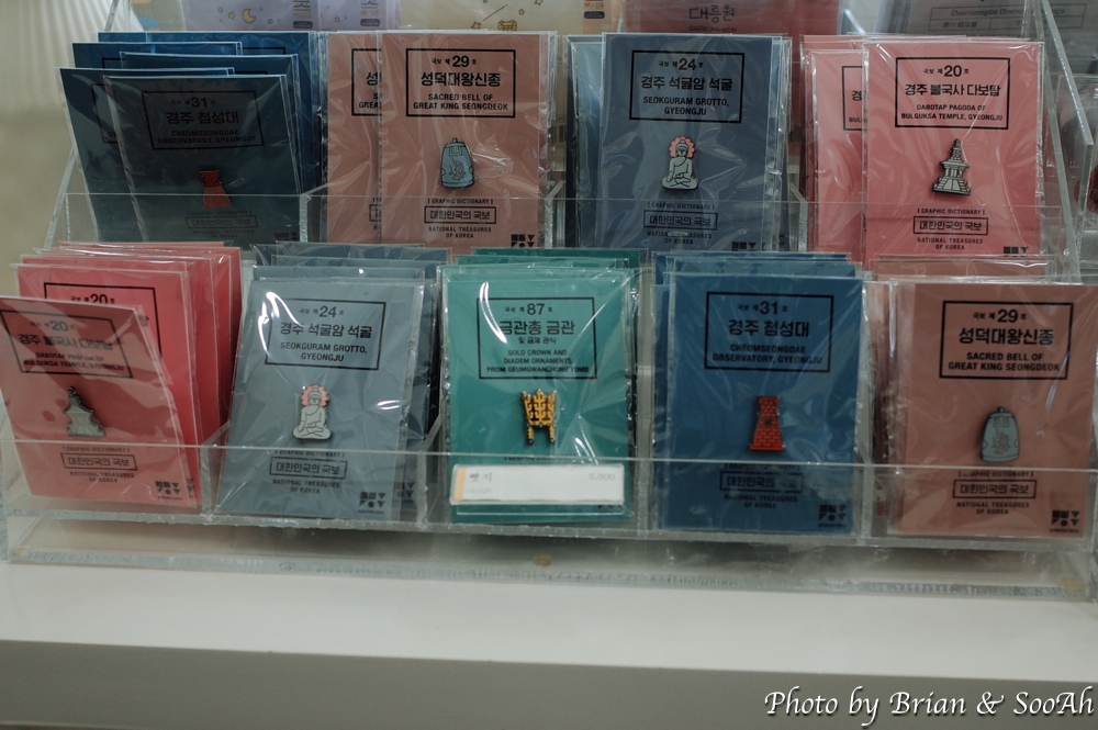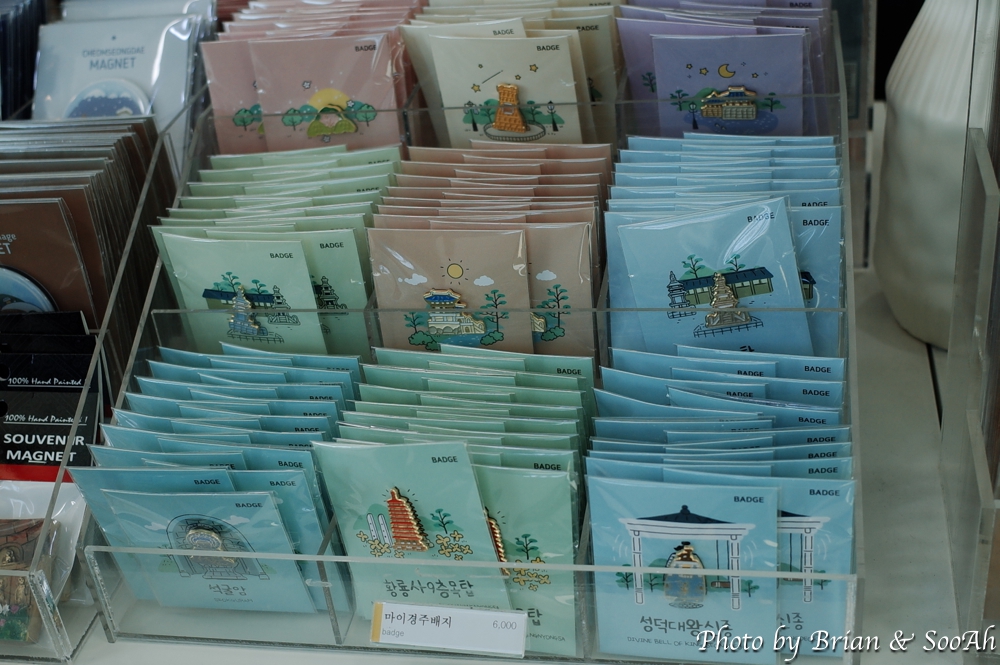 그렇게 3~4시간 정도 돈 다음에 나오는 길에 성덕대왕신종을 잠시 구경하고는 기념품 샾에서 수집 중인 뱃지 중에 괜찮은 게 있는지 좀 보고 몇 개 구매하고는 다음 장소로 이동했습니다.