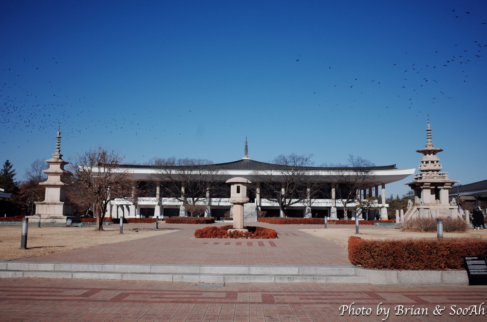 본관과 특별전시관을 대충 보는 데만도 2시간 정도 소요가 되서, 다음에 국립경주박물관만 보러 오는 여행 일정을 잡기로 하고 뒤 쪽으로 나가 보니, 불국사의 다보탑과 석가탑을 그 배치 그대로까지 옮겨 놓은 뒤 뜰이 있더군요.