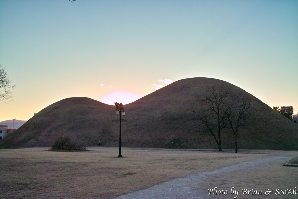 저녁 노을이 지기 시작한 뒤 경주 대릉원과 첨성대를 걸으니까 나름 운치 있고 좋았습니다.