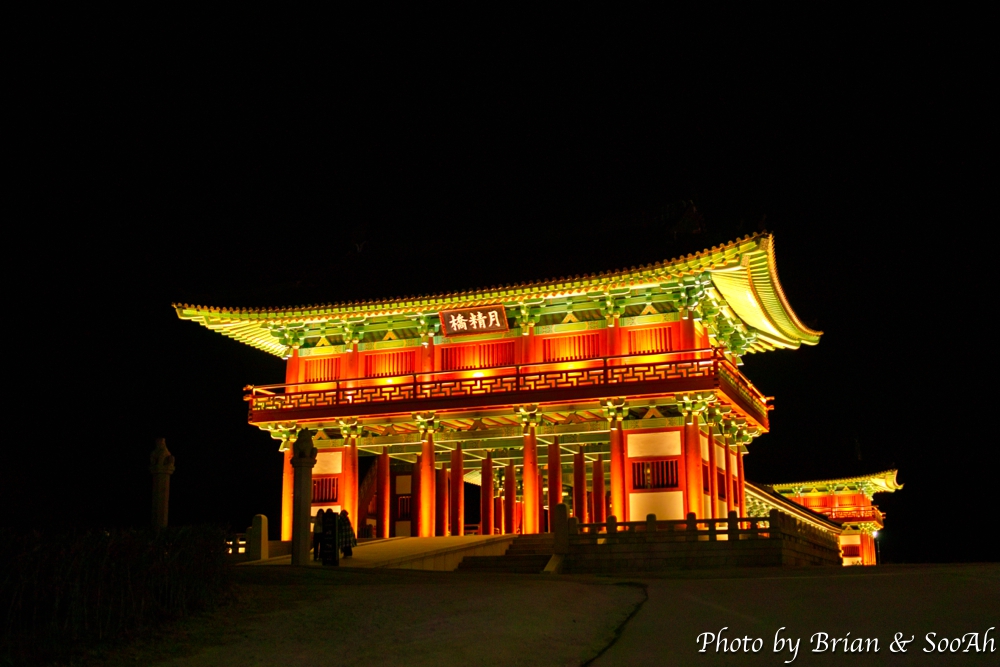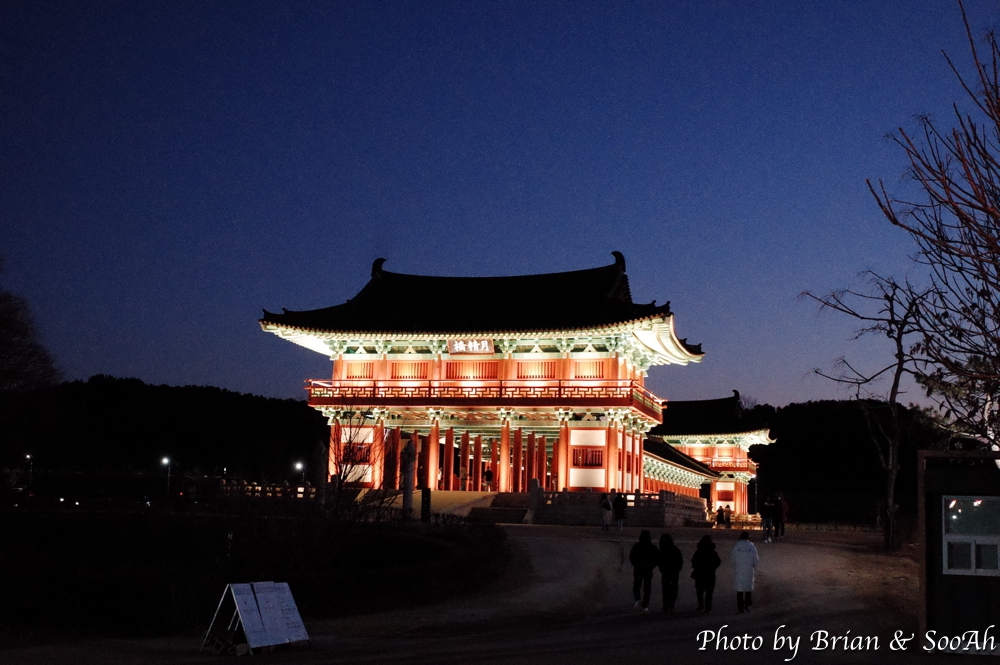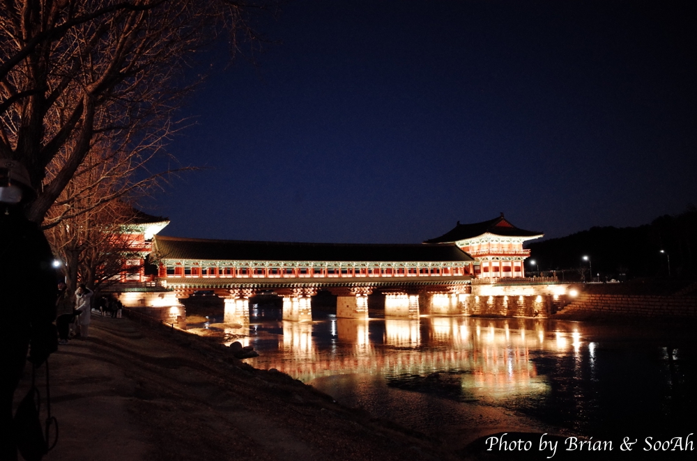 첨성대를 보고는 월성 쪽으로 돌아서 나오다 보니 월정교 앞으로 나오게 되더군요. 해가 지고 나니 월정교에도 조명이 들어오고, 이게 또 나름 장관이라 많은 분들이 다리 안팎에서 사진을 찍고 계셔서 저도 식당을 가기 전 잠깐 짬이 나서 사진을 찍었습니다.