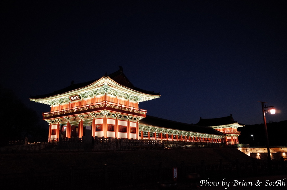 첨성대를 보고는 월성 쪽으로 돌아서 나오다 보니 월정교 앞으로 나오게 되더군요. 해가 지고 나니 월정교에도 조명이 들어오고, 이게 또 나름 장관이라 많은 분들이 다리 안팎에서 사진을 찍고 계셔서 저도 식당을 가기 전 잠깐 짬이 나서 사진을 찍었습니다.