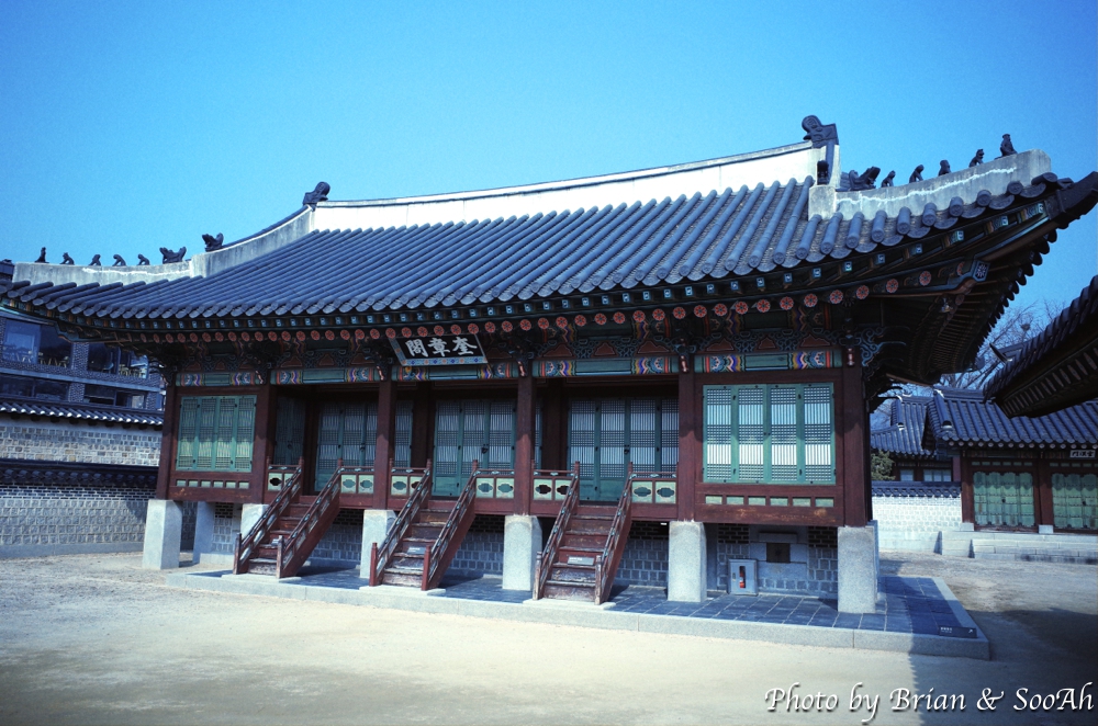 서고에서 다시 돈화문 쪽, 즉 남쪽으로 이동하면, 검서청이라고 하는 창덕궁 내 조그만 물줄기 위에 한 칸 전각이 걸쳐 있는 누각을 지나서 규장각 건물에 도착합니다. 이 두 곳에서 관헌들은 도서실처럼 책을 보고 학문을 더했다고 하네요.