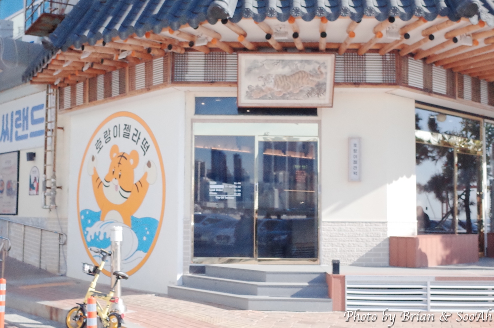 따뜻한 계란말이와 속이 든든해지는 소바를 든든하게를 먹고는, 미리 예약해뒀던 걸 하려 미포 쪽으로 이동하다가 "호랑이젤라떡"이라는 젤라또 아이스크림을 파는 곳이 있어서 들어가서 디저트로 먹었습니다. 매장 안은 별도의 좌석은 없고, 31개 아이스크림 가게처럼 종류별로 담긴 젤라떡 아이스크림이 담겨 있고, 이 중에 원하는 걸 고르면, 1회용인게 조금은 아까운 나무빛깔 트레이에 담겨서 제공되더군요. 딱히 먹을 곳이 없어서, 걸어다니면서 먹기도 애매해서, 가게 앞에 계단에 잠깐 앉아서 먹었습니다. 겨울 바닷바람이 쌩~하는데, 거기서 아이스크림이라 이냉치냉이랄까요. 찹살떡 같은 질감에 젤라토 아이스크림이라 생각하시는 딱 그런 맛이었습니다만, 아무래도 장소가 장소다 보니 조금 더 맛있게 느껴지는 게 있는게 아닌가 싶네요.