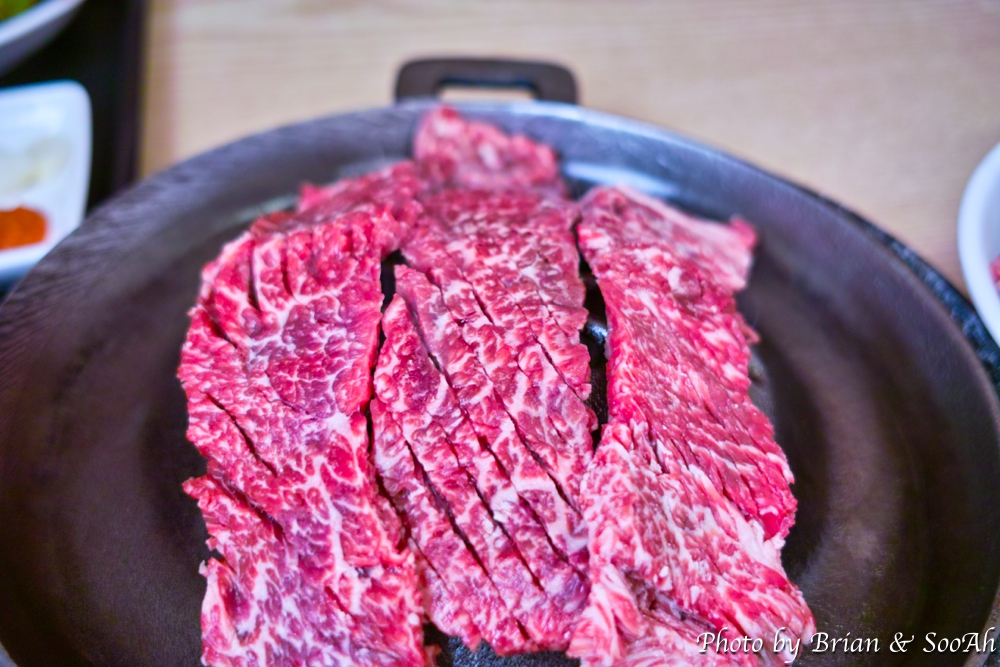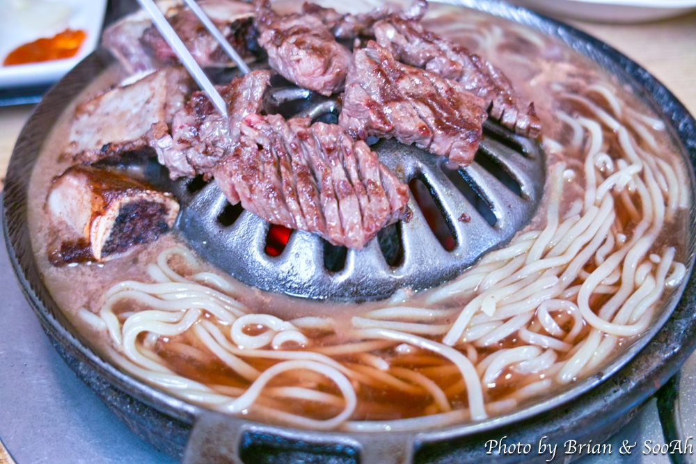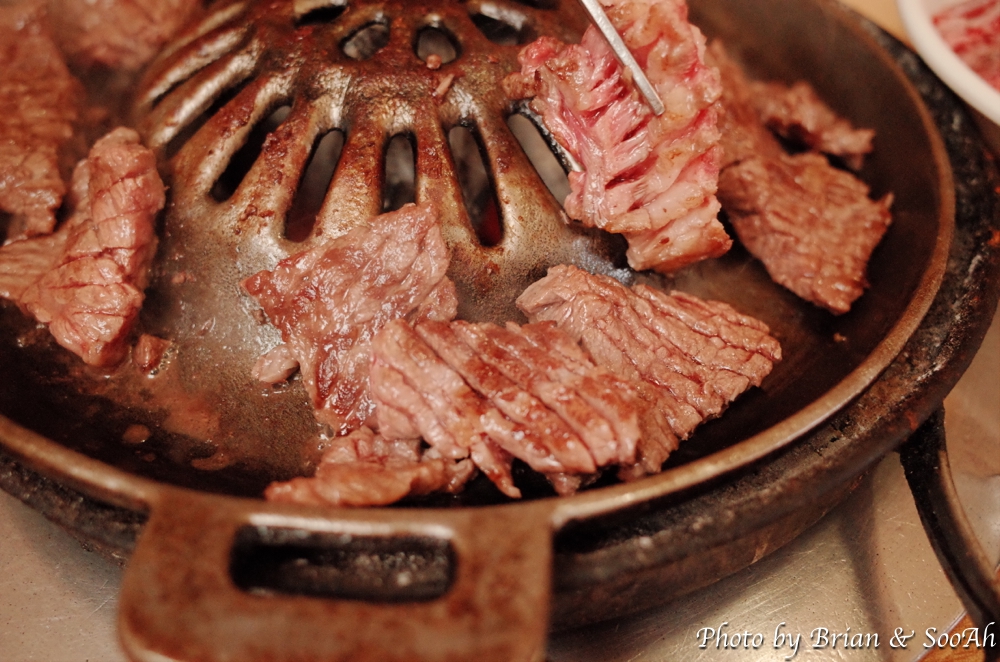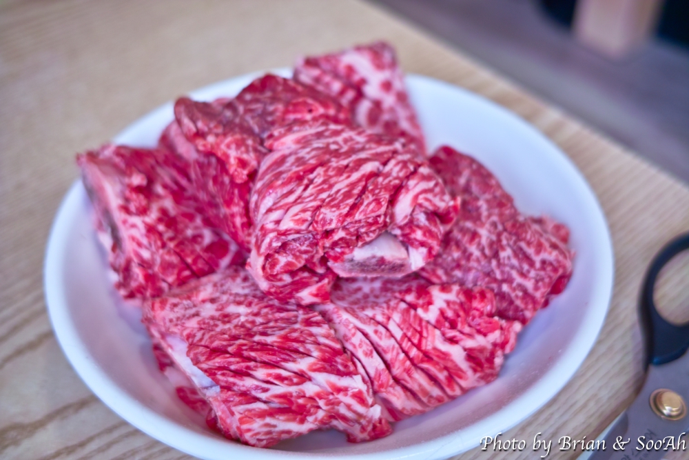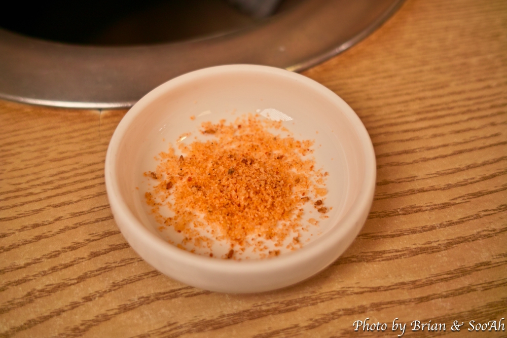 주문을 하고 나면, 갈비를 찍어먹으라고 주는 소금양념과, 개인별로 반찬이 담긴 1인반찬트레이가 놓여지구요. 그리고는 그 뒤에는 영롱한 빛깔을 자랑하는 생갈비가..... 생갈비를 직원 분이 직접 구워주시면, 어느샌가 노릇노릇 해지면서 먹음직스런 갈비로 변해가구요. 거기에 해물된장국으로 페어링해주면 그냥 막 들어가더군요. 둘이서 3인분을 먹었는데, 다음 나올 후식 때문에 참았답니다.