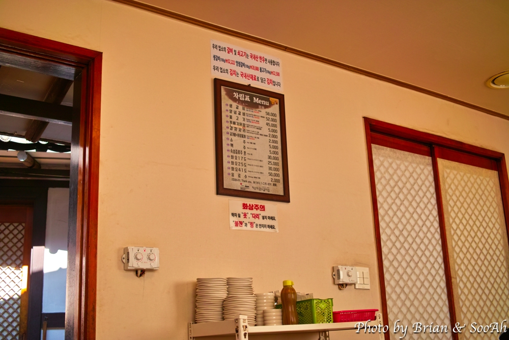 가운데 평상 같은 곳에서 앉아서 기다리다가 차례가 되어서는 본채쪽이 아닌 별채쪽 방으로 안내 받아서 들어갔습니다. 여기 주 메뉴는 생갈비와 양념갈비가 있는데, 어렸을 적 여기 들렀을 때도 늘 생갈비만 먹었던지라 생갈비를 시켰습니다. 생갈비는 매일 제공되는 양이 한정되어서 점심은 몰라도 저녁 때는 미리 예약주문 해 두지 않으면 안 된다고 하더군요. 저도 미리 예약 주문할 때, 입장하는 순서는 가게 앞에서 대기 순번을 뽑은 순번대로 가지만, 생갈비는 2~3일 전에 예약하지 않으면, 당일 제공되는 양이 떨어지면 못 먹을 수 있다고 해서, 2~3일 전에 방문일자를 확정하고는 전화를 해서 생갈비만 예약해 두려고 했더니 낮에 오는 경우에는 떨어지는 경우가 없으니 괜찮다고는 하시더라구요. 그래도 예약을 걸어두긴 했지만요. (^^)