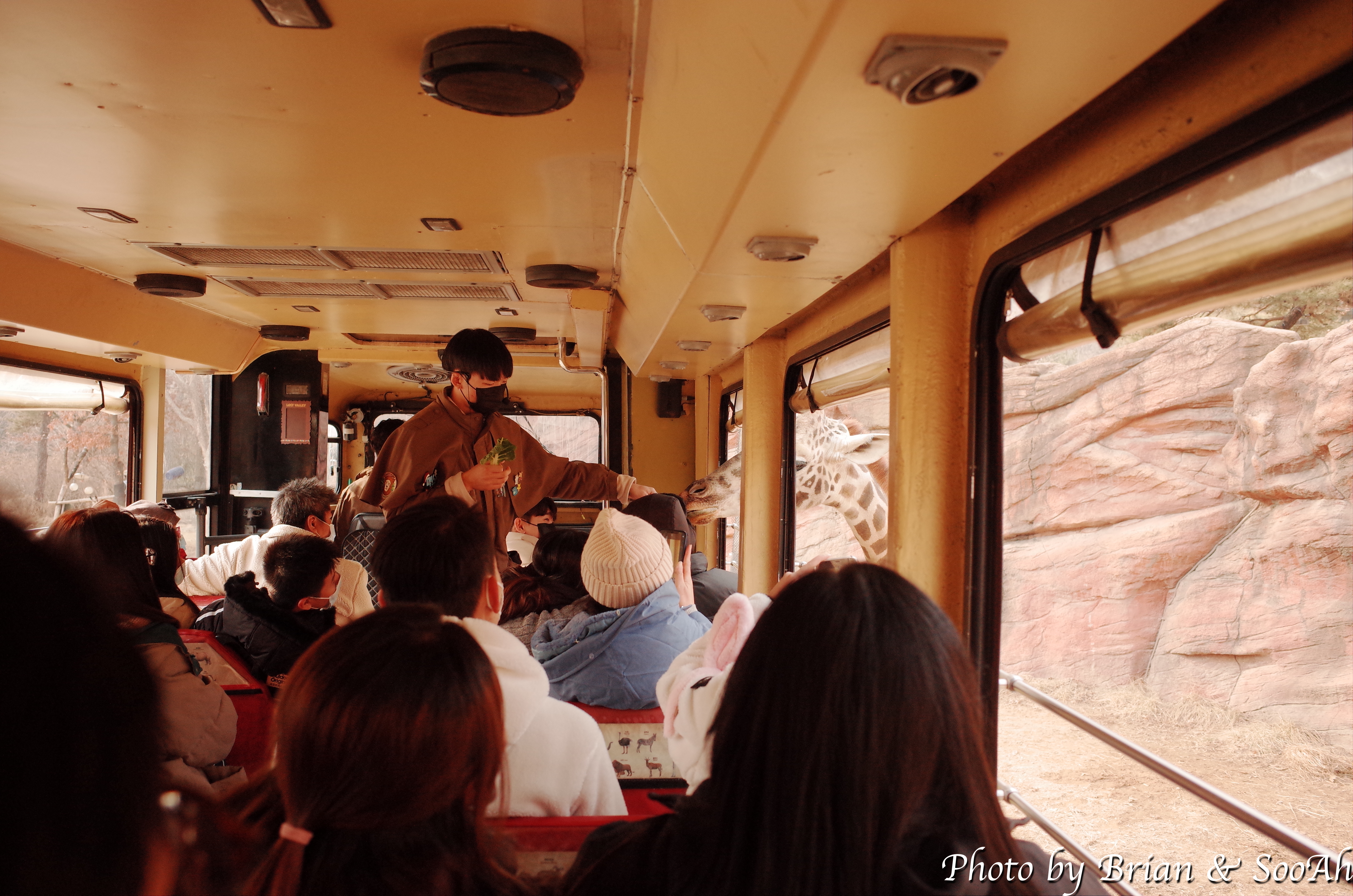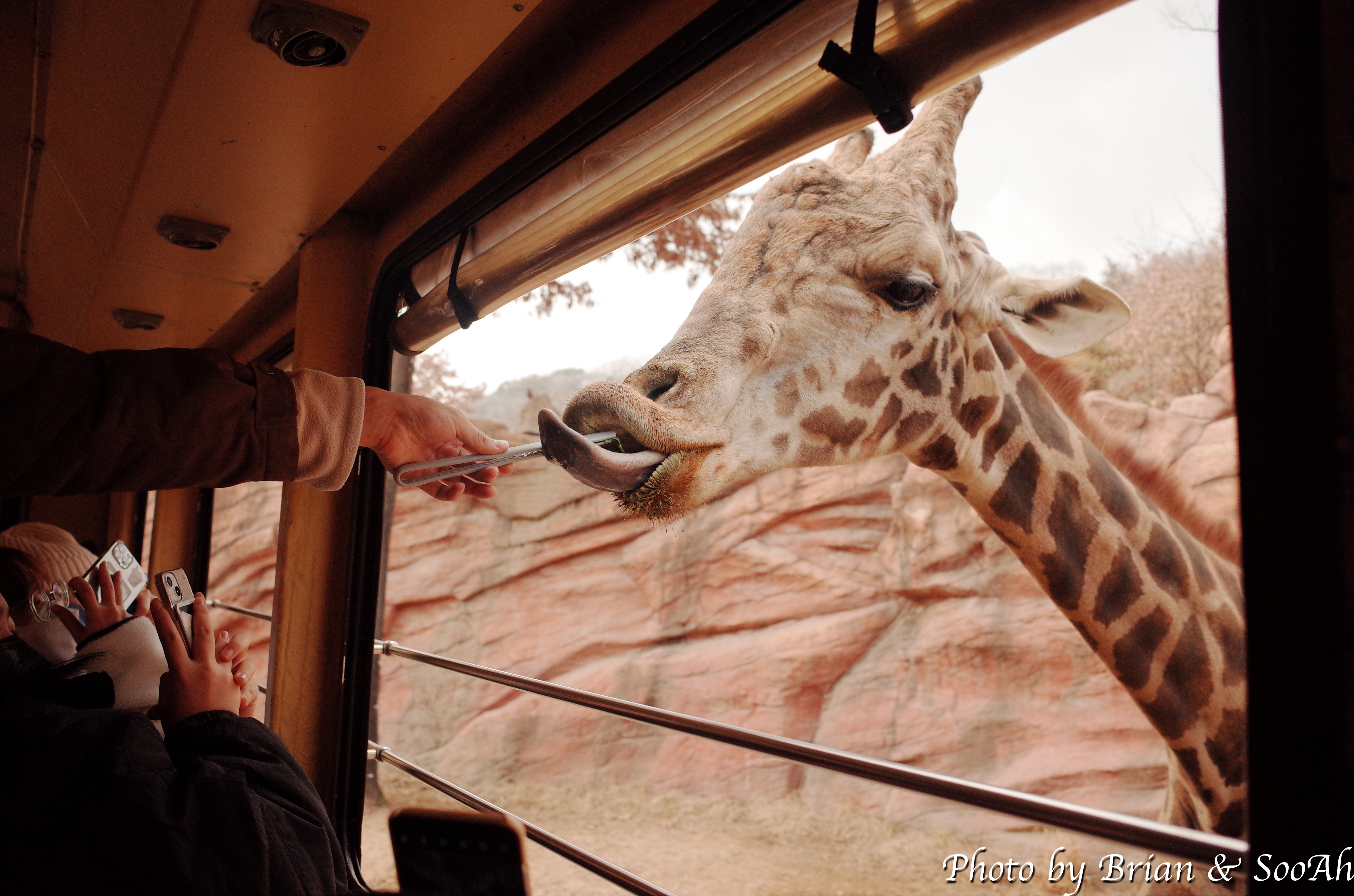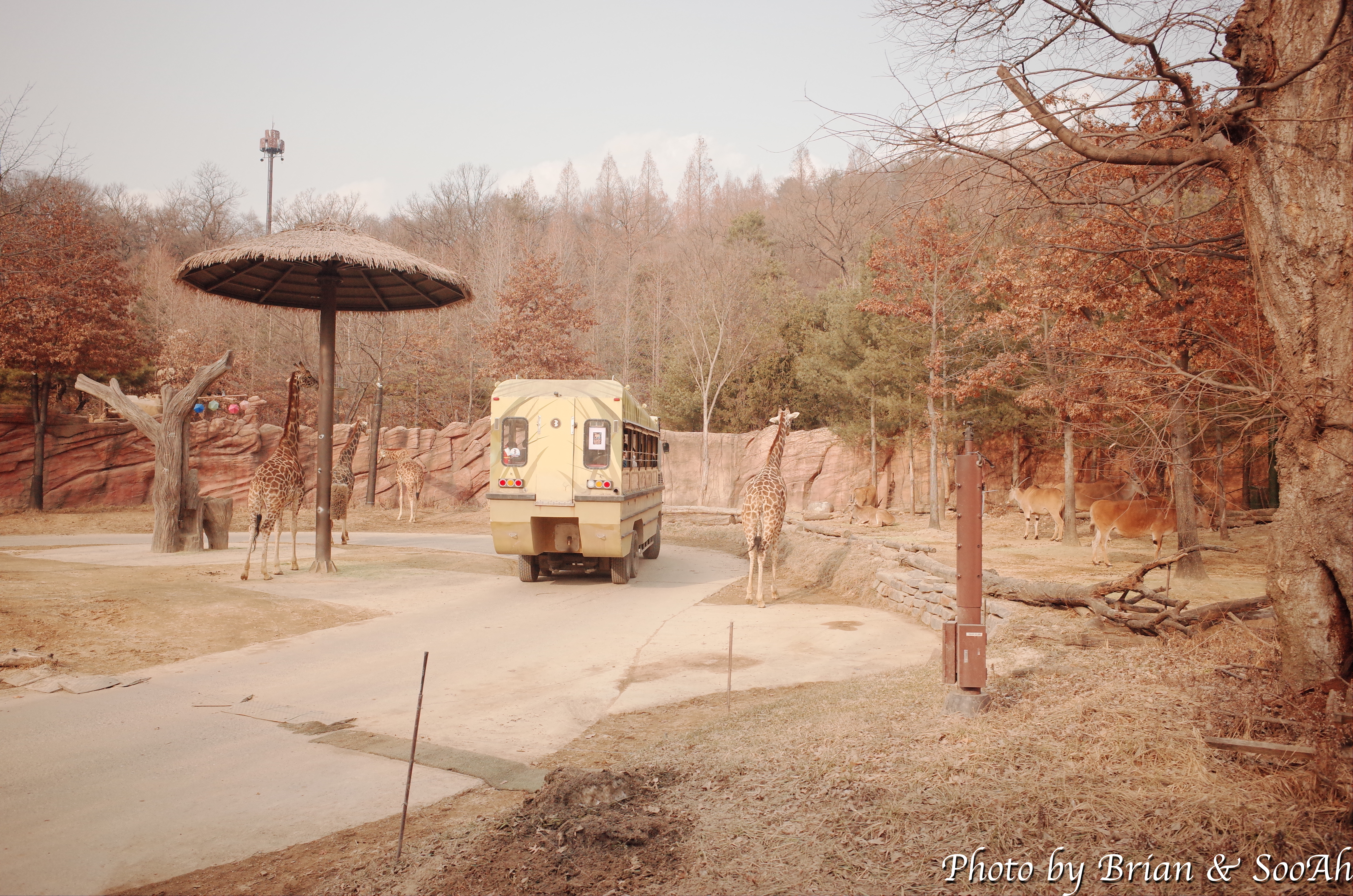 유명한 아마존 익스프레스는 너무 줄이 길고, 또 장모님이 물에 젖으셨다가 혹시라도 감기라도 걸릴까 해서, 그건 포기하고 그 옆에 사파리를 갔습니다. 수륙양용차도 있다고 하던데, 그건 육식동물 쪽이고, 제가 간 곳은 기린이랑 얼룩말등이 있는 초식 동물 쪽이었습니다. 하지만 여기도 줄이 엄청 길어서 한 40분 기다려 탄 거 같네요. 겨우 버스에 탑승하니 이제 버스가 출발해서는 이 곳 저 곳의 동물들을 근접해서 볼 수 있었네요.
