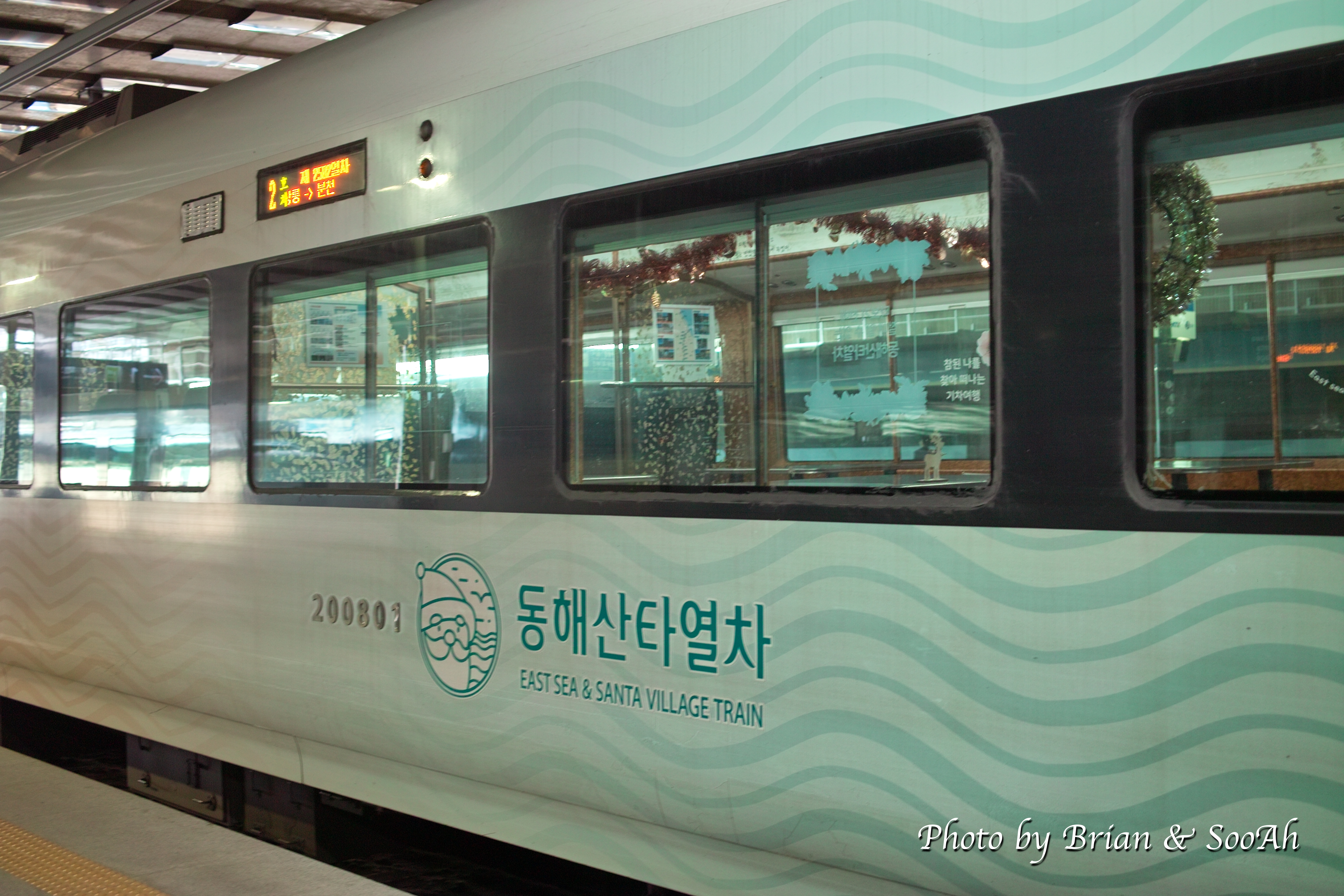 다음날 아침 일찍 일어나서는 호텔에서 택시를 타고 얼마지 않아서 강릉역에 도착했습니다. KTX역으로 바뀐 지 좀 됐지만, 직접 안에 들어와 본건 처음인데 꽤 깔끔하고 세련됬더군요. 근데, 탑승객들이 늘어날 걸 생각하면 내부 공간은 생각보다는 좀 좁다는 생각도 들었습니다. 어쨌든, 도착해서는 시간이 좀 남아서 역 내부랑 역 주위를 보다가 탑승 플랫폼이 있는 아래층으로 내려가니 출발 시간이 다가오는 동해산타열차가 기다리고 있더군요.