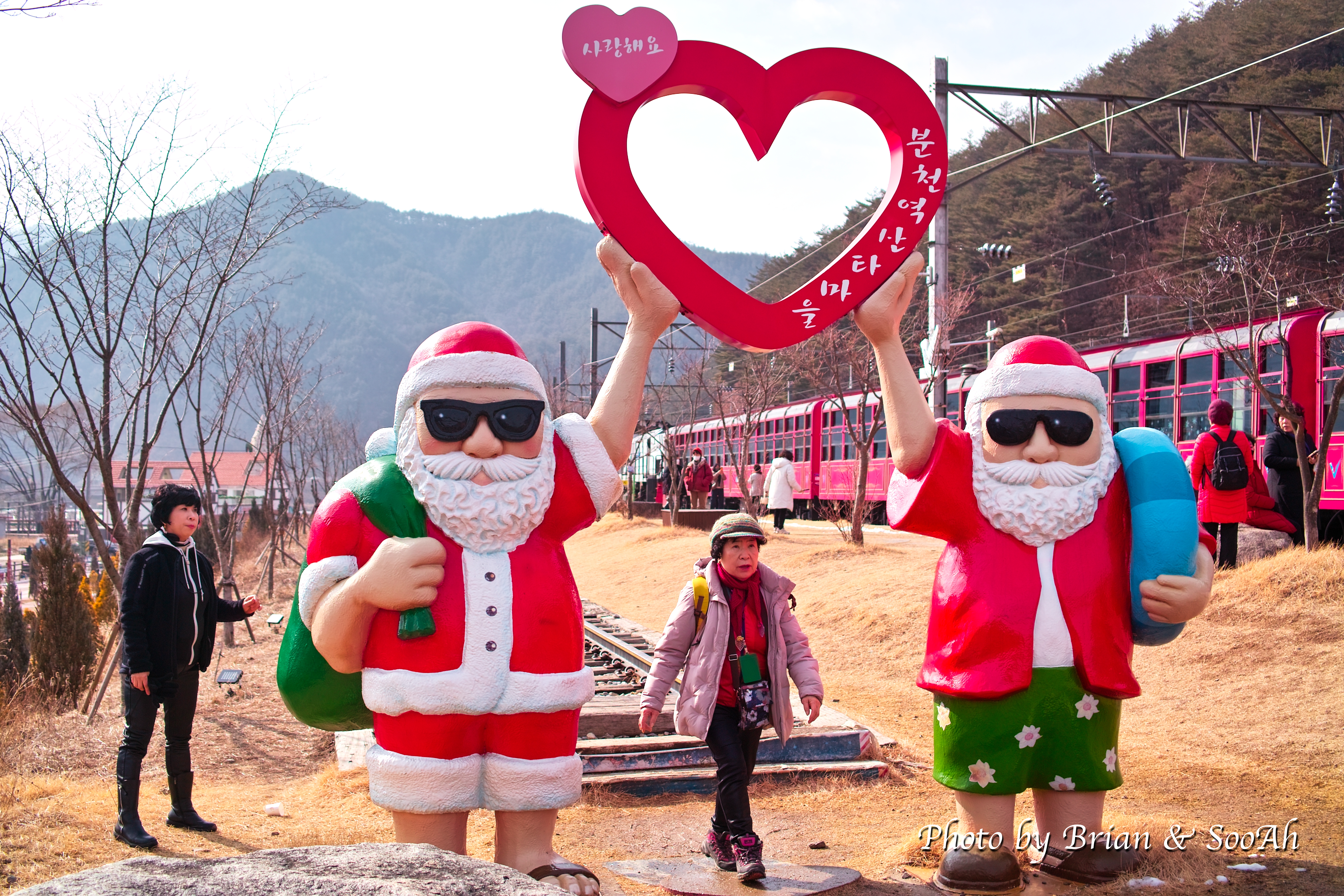 많은 분들이 사진 찍으려고 여기저기 돌아다니셔서, 다 지나가신 다음에 사진 찍느라 좀 걸리긴 했고, 거기다가 이 날이 분천산타마을이 오픈하는 마지막 주말인지라, 막차로 오신 분들도 있었습니다. 저희가 내리고 나니 얼마 지나지 않아 영주와 철암을 오가는 백두대간 협곡열차가 들어와서는 이걸 타고 나가시는 분들이 좀 빠지니까 좀 많이 널널해졌었습니다. (^^)