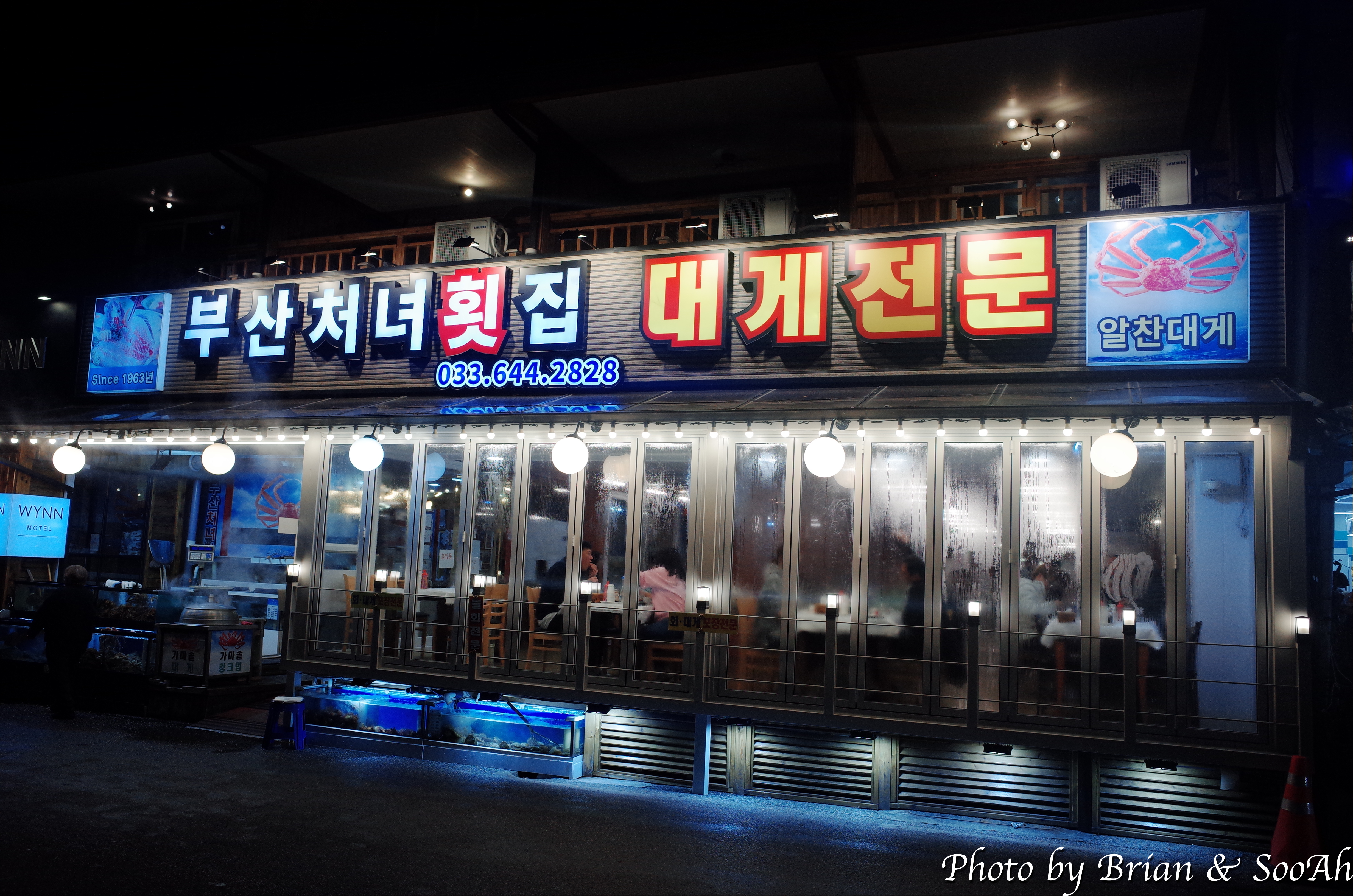 동해산타열차를 타고 다시 강릉으로 돌아와서는 밤바다를 보려고 택시를 타고 경포해변으로 갔습니다. 일단 강릉도 식후경이라고 경포해변에서 나름 유명한 부산횟집에 가서 저녁을 먹었습니다. 사람들이 정말 많이 있더군요. 자리가 좀 있어서 안내를 받고는 세트로 주문해서는 맛있게 먹었습니다.