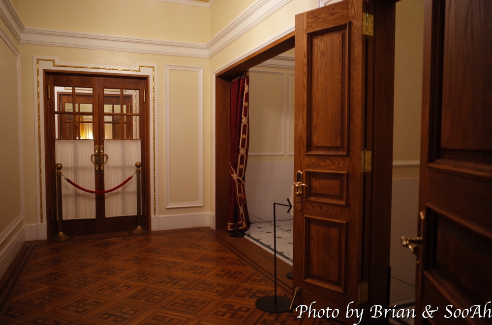 석조전에 들어가면서 실내화로 갈아신고는 중앙 홀에서 가이드 분의 간단한 행사 진행 시 주의사항을 듣고는 반시계방향으로 1층 대기실부터 해서 2층에 황실 가족을 소개하는 안내실을 들린 후에 바로 황제의 침실과 서재/응접실, 그리고 황후의 침실을 둘러 봤습니다. 여기는 솔직히 낮에 하는 석조전 내부 해설 관람으로도 볼 수 있었던 곳이라 여긴 또 사진만 올려 놓고 넘어갑니다.