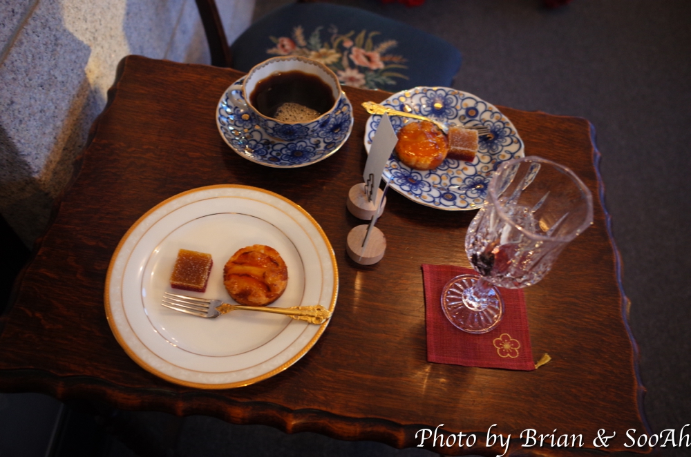 그러고는 옆에서 클래식 연주가 시작되었고, 커피 또는 상심자차와 다과를 즐기며, 어두워져가는 덕수궁과 건너 고층빌딩을 바라 보며 경치를 즐겼습니다.