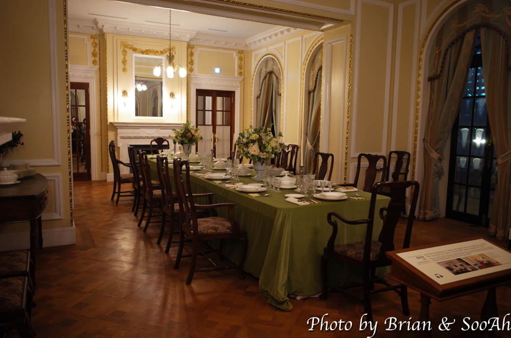 2층 발코니(?)에서 커피 타임을 가지고는 다음 장소로 이동해서는, 밖에서 봤을 때 1층 왼쪽에 해당하는 연회장으로 갔습니다. 이 곳도 낮 시간에 하는 석조전 1층 왼쪽에 해당하는 곳으로 연회장, 대식당 뭐 암튼 그런 곳입니다. 여기도 이전에 들렀을 때 찍은 사진도 있고 해서, '밤의 석조전' 행사라고 해서 특별한 느낌은 없었습니다. 아, 제일 큰 차이가 있네요. 조명이 켜져 있는 거. 조명 보는 게 그러고 보니 어느 방을 가든 가장 큰 차이자 즐거움이었네요.