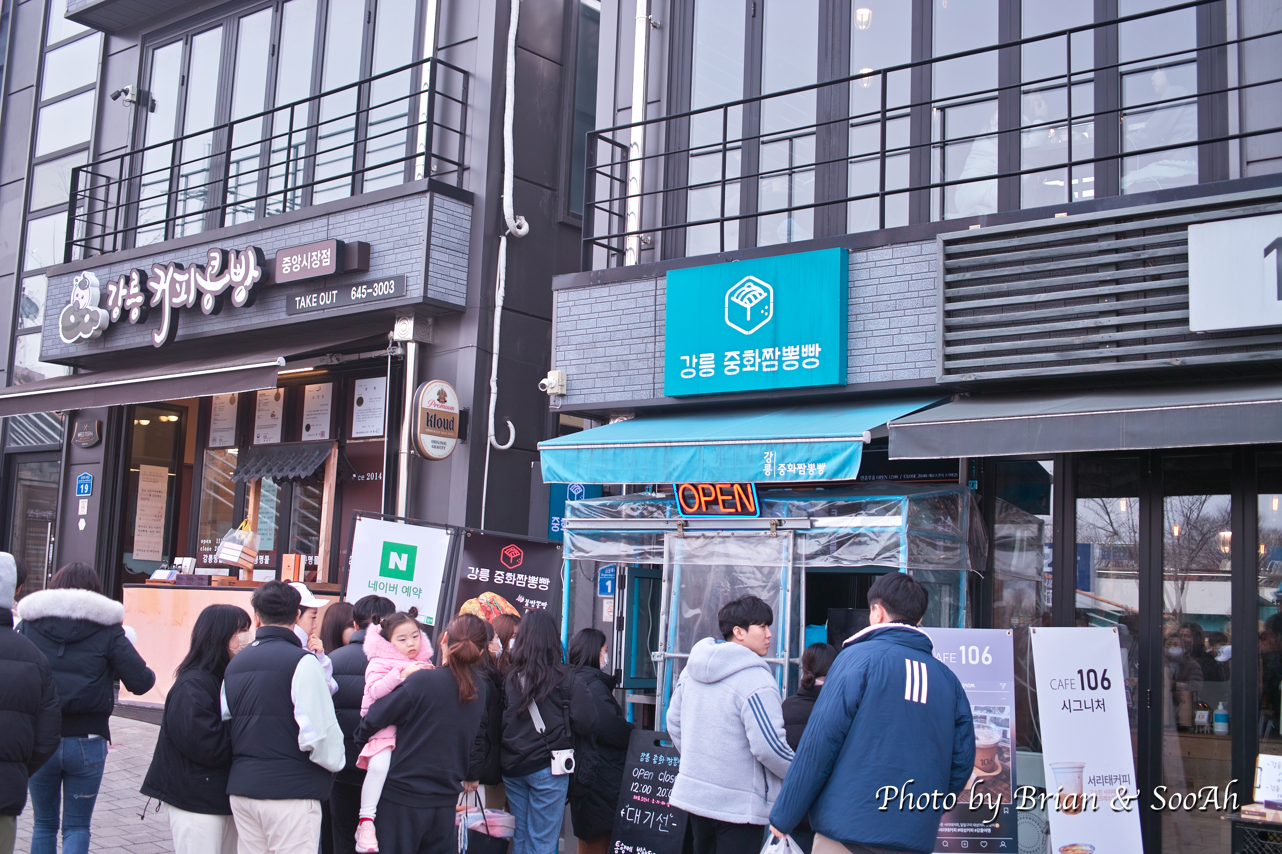 그러고는 돌아가는 버스 시간이 약 2시간 정도 남아서 중앙시장 월화거리 쪽으로 이동했습니다. 방문 당시 유행이라고 해서, 네이버예약으로 전날 미리 주문해뒀던 중화짬뽕빵도 픽업하면서, 월화거리와 중앙시장을 걸었는데, 특히나 중앙시장은 정말 사람이 많더군요. 특히나 중앙시장 뿐만이 아니라 강릉의 명물이라는 닭강정집은 정말 엄청난 인파가 줄을 서서 하나씩 사가길래, 저희도 집에 가져서 먹으려고 하나 사고는...