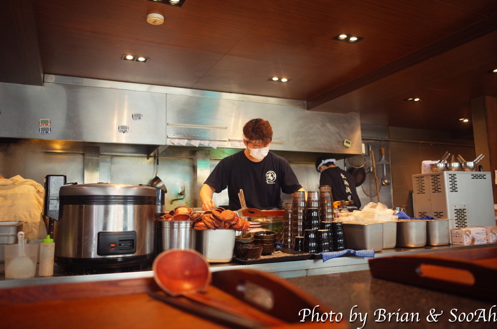 저희는 첫 오픈런 입장의 거의 마지막으로 들어갔습니다. 앞에 4인 손님들이 있어서... 어쨌든 입장해서는 인당 우동 하나씩 시키고는 안내받은 자리에 앉았습니다. 젊은 남성 크루 여러 분들이 안에서 분업으로 장사를 하시는데 왠지 든든해 보이더군요.