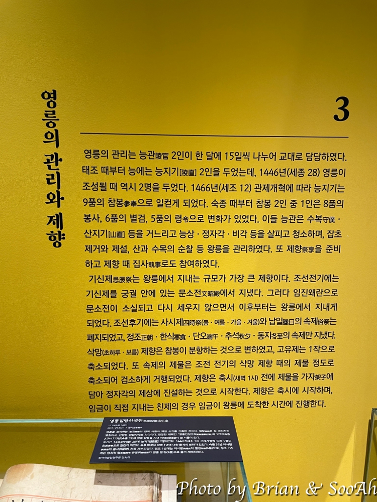 일단 영릉 영역 안으로 들어가기 전에 바깥에 있는 세종대왕역사문화관을 먼저 들어갔는데, (생각해 보니 이 정도 규모의 전시관이 왕릉 앞에 있었던 기억이...) 때마침 세종대왕 관련 특별전시가 진행되어서 겸사겸사 전시 내용을 구경하면서 전시관을 구경했습니다. 영녕릉의 기본적인 정보 외에도 세종대왕의 치적에 대해서 관련된 전시물들이 있는데 개인적으로는 종묘제례악 관련 악기들과 각종 서적들이 눈길이 가더군요.