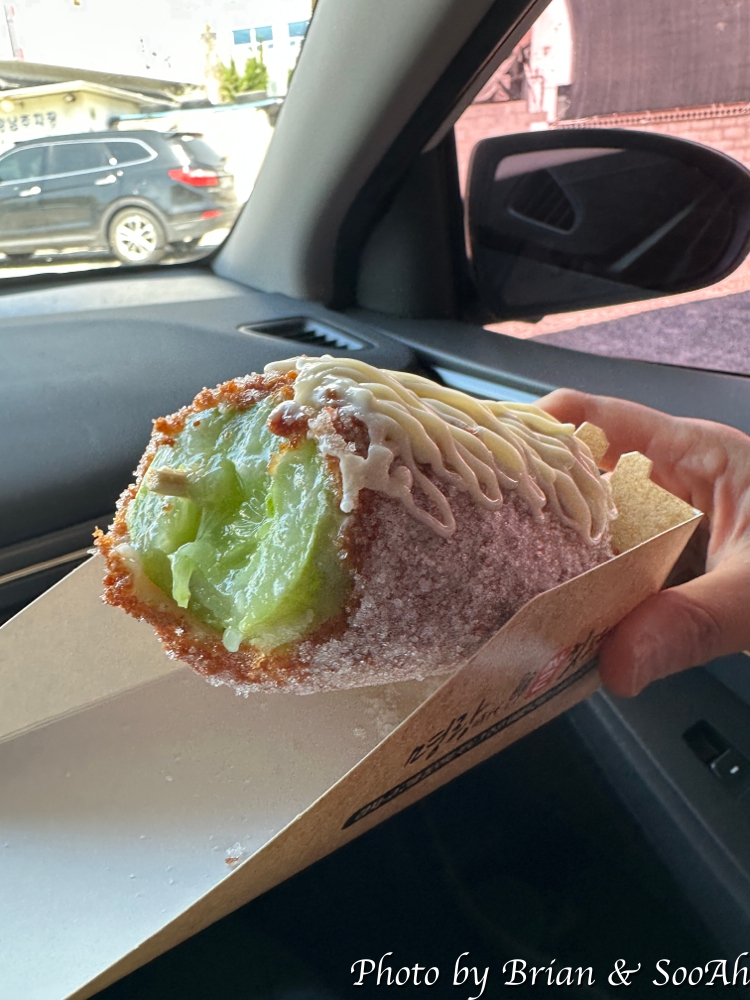 고래문화마을을 다녀오고 나서는 아점 겸 이른 점심을 먹으려고 울산 시내 쪽으로 이동했습니다. 그러던 중에 여행 당시에 "M 핫도그"에서 이벤트성으로 몇몇 매장에서만 한정적으로 오이핫도그를 판다고 했는데, 그 매장 중 하나가 울산 산업탑 근처 매장이라고 해서, 궁금하면 또 못 참는 성격인지라, 어차피 아침도 안 먹고 점심 먹는 거니 그 전에 아침 대신으로 먹자고 해서는 Take-out으로 하나 주문해서는 먹어 봤습니다. 바삭하꼬 뜨거운 튀김 옷 안에 물컹한 오이가 씹히는데... 개인적으로는 오이를 좋아하지만, 오이를 씹을 때 나오는 물기와 뜨거운 튀김옷이 뭔가 언발란스하고 익숙한 맛이 아니다 보니 좀 그랬습니다.