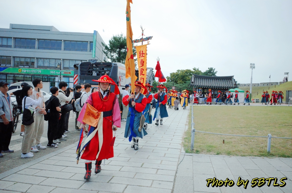 행사는 약 1~20분 정도 진행되었는데, 광화문의 경우에는 조선 초/중기이다 보니 무기가 칼이나 창이었는데, 여기는 조선 후기이다 보니 조총이 있는 게 좀 신기했습니다. 그 외에는 원래 화성행궁 앞에서 하던 걸 본 적도 있고 해서... 제게는 더 신기한 건 없었는데... .아쉬웠던 건 행사가 진행되는 와중에는 장안문을 통과하거나 하는 일반인의 이동을 통제했으면 좋았을 것을, 그러지 않다 보니 행사가 진행중인데, 그 사이로 자전거 타고 트로트 크게 틀고 지나가는 아저씨가 카메오로 나오는 것 등이 좀 아쉬웠습니다.