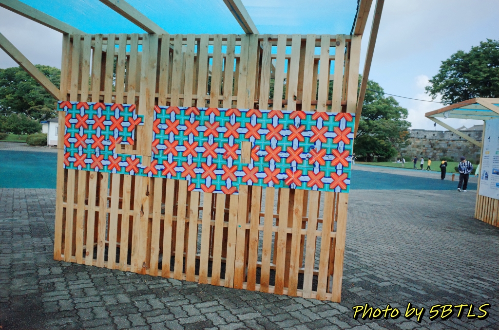 이 안내 부스에서, 일부 유료 체험인 장인들 부스의 진행 시간과 체험료를 안내하고 또 체험료를 받기도 했는데요, 일단은 이 공터와는 떨어진 성곽 아래 잔디밭에는 수원화성의 4대문 모형과 스티로폼으로 된 돌 모형들이 있어서, 석장들이 했던 돌쌓기 체험을 할 수 있었습니다.