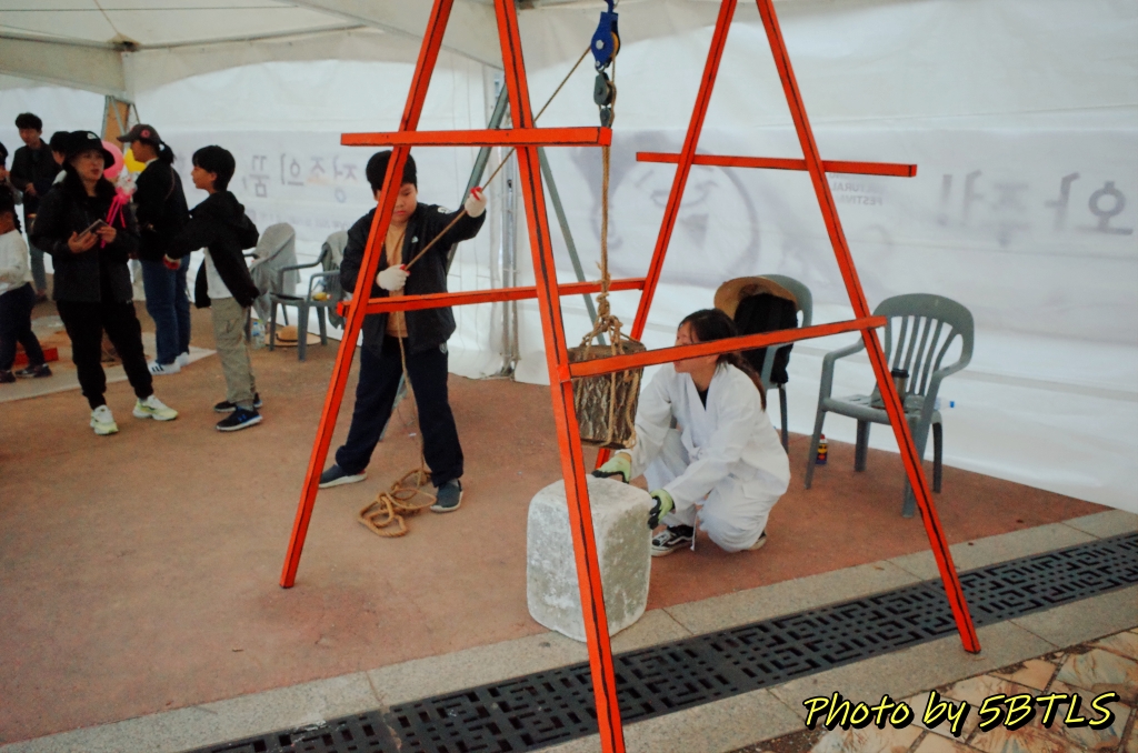 행궁다감 행사의 2부인 만들기 체험을 마치고는, 공연장을 나와 바로 옆에 있는 행궁광장으로 다시 이동했습니다. 행궁다감 들어가기 전에는 준비 중이었던 "예술놀이터 - 정조의 꿈, 수원화성 축성을 도와줘!"라는 행사를 구경하러 갔는데요. 이게 '장인놀이터'라 다른 유사한 프로그램들이 있었는데, 차이점은 다른 프로그램은 여러 프로그램을 자유로이, 순서와 상관없이 체험할 수 있는데, 여기는 마치 코스요리처럼 체험을 전부 순서대로 진행하도록 되어 있더군요. 어린 친구들이 많이 하고 있어서, 행사 진행하시는 분의 양해를 받아서 사진만 들어가서 찍고 나왔습니다. 축성을 하는 데 있어서 필요했던 여러가지 행위들을 직접 체험해 보는 건데, 나름 순서대로 다 차례대로 해볼 수 있어서 오히려 하나만 하고 나오는 것보다 나아 보였습니다.