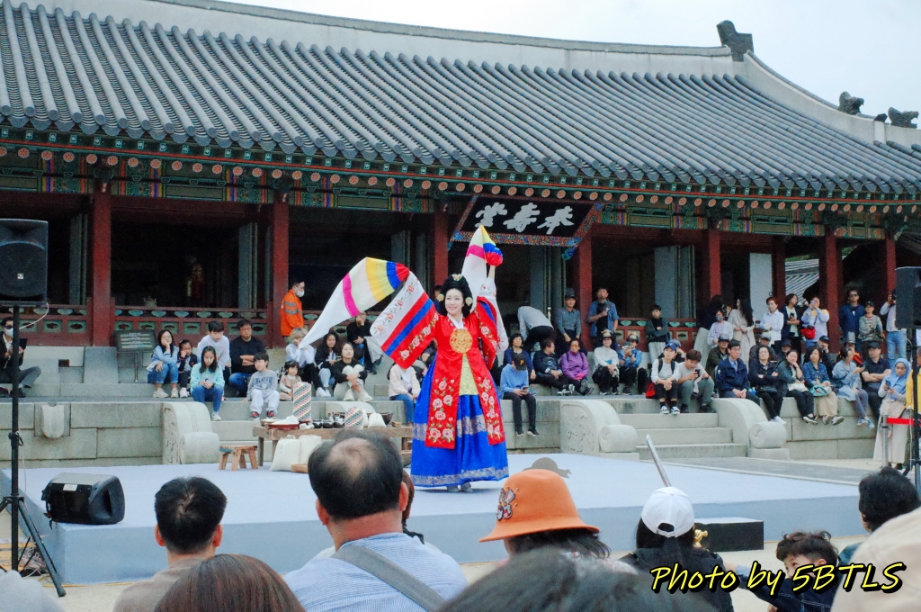 봉수당으로 가보니, 봉수당에서 장락당으로 가는 쪽으로 공연무대와 나무의자들이 놓여서는 다음 회차 공연을 기다리고 있더군요. 빈 의자에 앉아서 공연을 기다리고 있으니 공연시각이 되어서는 바로 이벤트가 진행되었습니다.