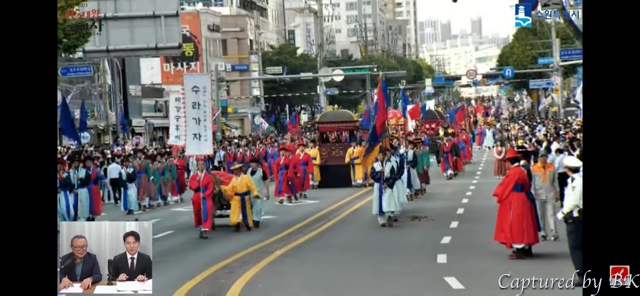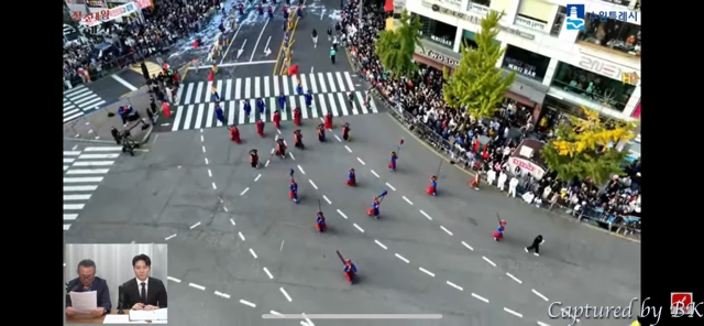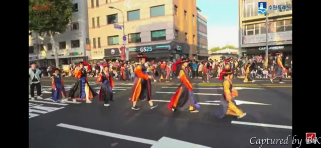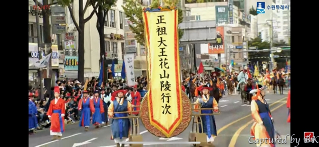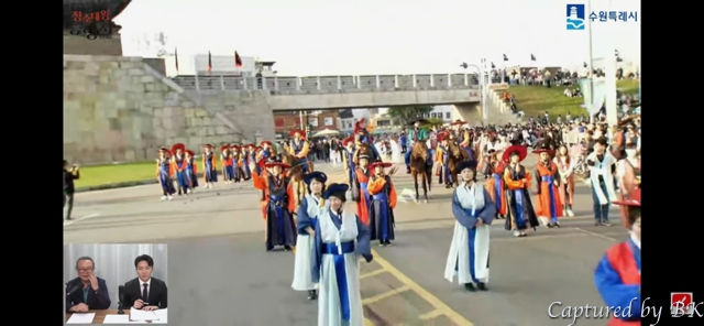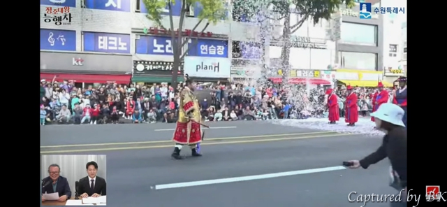 집에 돌아와서는, 수원아래 '재현행사'를 생중계했던 유튜브 영상을 보면서, 수원 행렬 2팀이 나오는 부분을 캡쳐해서, 저희 행렬이 나오는 것도 정리해봤네요.