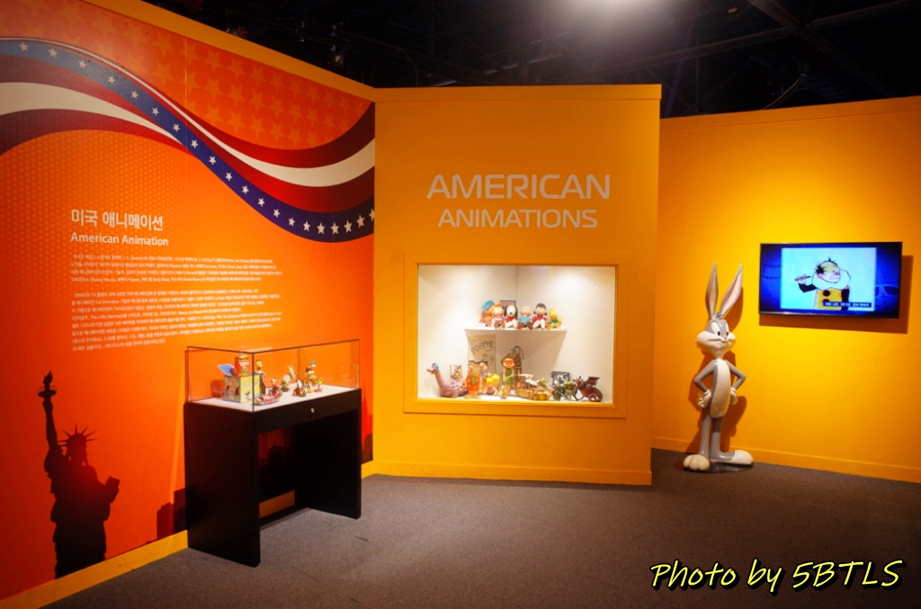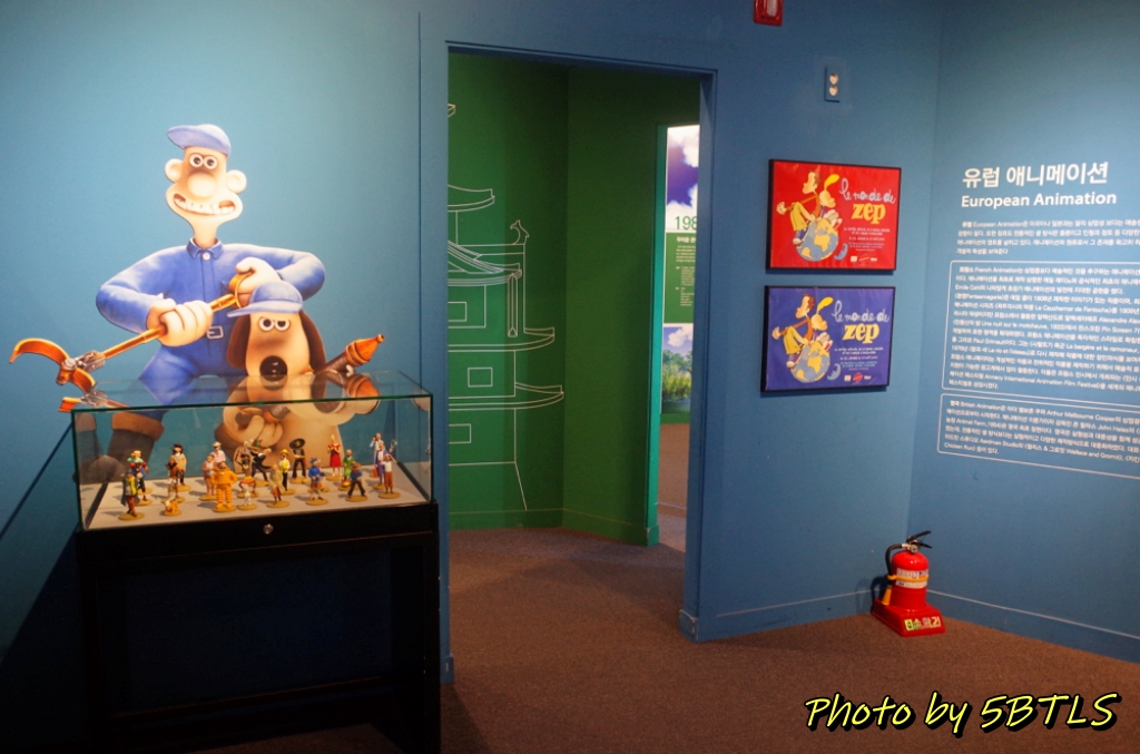 입장권을 구매하고 들어간 1층은 역사관 같은 콘셉이었습니다. 벽화에서부터 인간이 그림을 그리기 시작한 것에서 영사기를 통해 움직이는 그림들이 나오기 시작한 것까지의 애니메이션의 역사를 보여주고 체험하는 공간이었고, 마지막에는 한국의 만화/애니메이션의 역사를 얘기하는 공간이 있었습니다. 그리고 한국 애니메이션 역사에 빠질 수 없는 로봇태권브이까지...