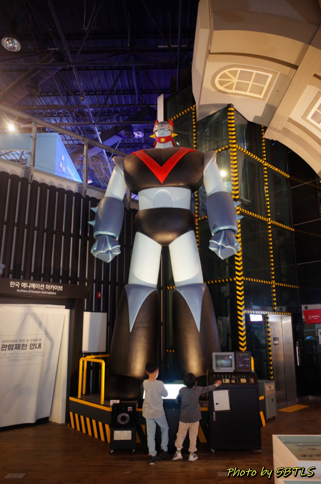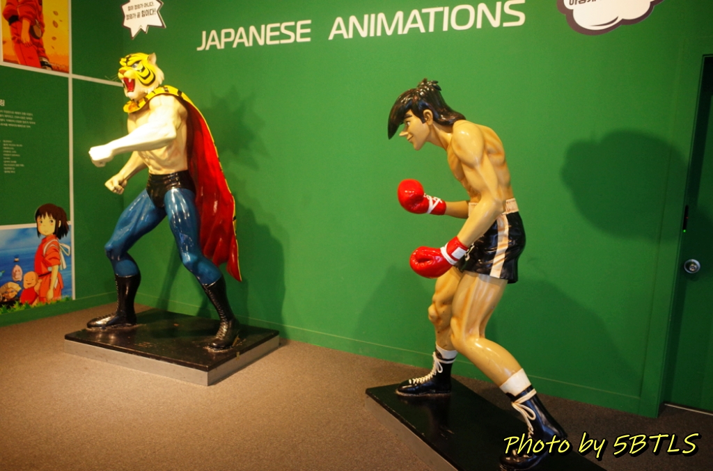 입장권을 구매하고 들어간 1층은 역사관 같은 콘셉이었습니다. 벽화에서부터 인간이 그림을 그리기 시작한 것에서 영사기를 통해 움직이는 그림들이 나오기 시작한 것까지의 애니메이션의 역사를 보여주고 체험하는 공간이었고, 마지막에는 한국의 만화/애니메이션의 역사를 얘기하는 공간이 있었습니다. 그리고 한국 애니메이션 역사에 빠질 수 없는 로봇태권브이까지...