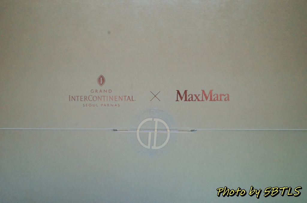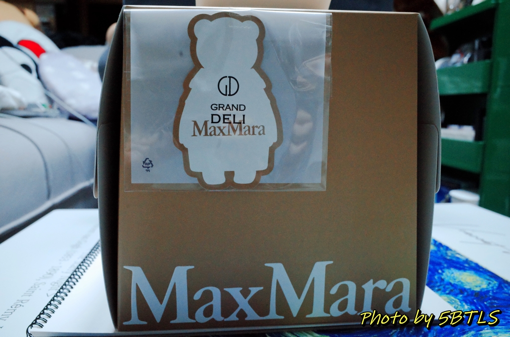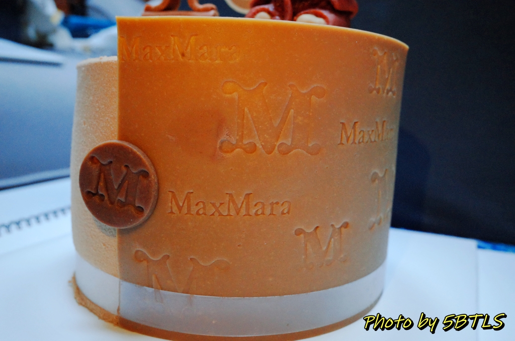 그리고 케이크의 둘레는 카라멜을 얇게 판으로 만들어서 반만 돌려서는 거기에 콜래보를 한 막스마라의 로고들이 잔뜩 표시되어 있더군요. 이 카라멜이 풀려서 벌어지지 않게 케이크 아래로만 얇게 고정을 위한 얇은 띠가 묶여 있더군요.