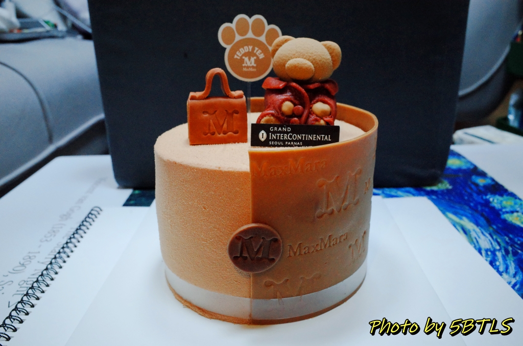 케이크를 둘러싼 카라멜을 일단 제거하고, 막스마라 로고 케이크를 치우고는 케이크 본체를 잘라 내 보니, 티라미스 케이크 안에 마스카포네 치즈와 카라멜덩이들이 있었습니다. 정말 부드러운 케이크였고 맛있었네요. 모양까지 이렇게 이쁘다면... 그랜드 인터켄티넨탈은 제발 콜래보를 많이 해서 평범한 케이크가 아닌 좀 더 이쁘고 귀여운 케이크가 내년에 나왔으면 하더군요.