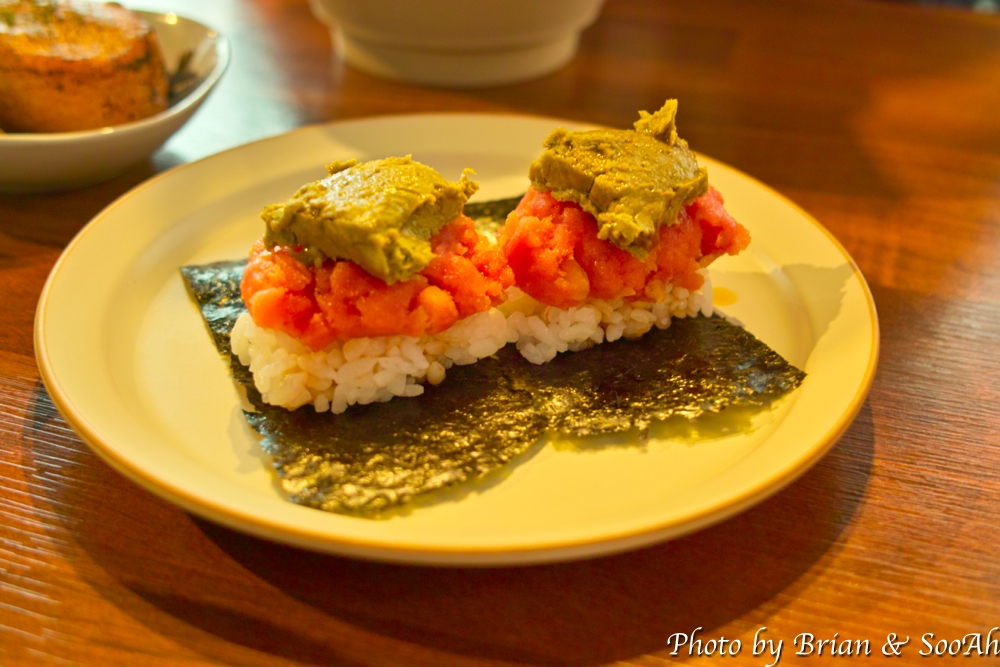 고등어소바는 위에 보이는 참깨와 아래에 숨겨진 성게의 콜라보로 피넛버터를 먹는 듯한 달콤함이 좋았습니다. 그리고 개인적으로 좋아하는 고등어회와 소바의 식감이 잘 어울리더군요.