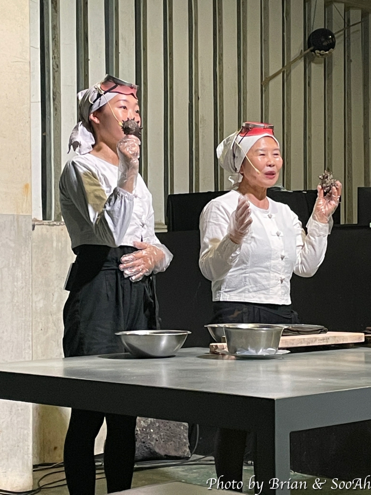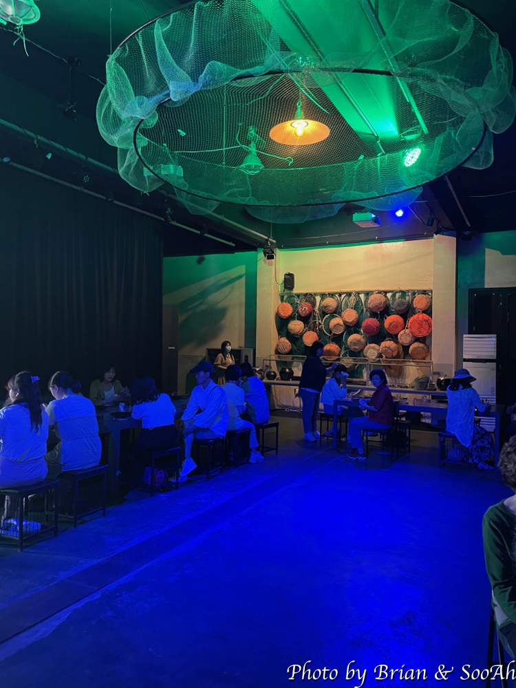 모든 참가자들이 좌석에 앉고 나니, 조명이 꺼지고 나서는 행사가 시작이 되었습니다. 간단한 행사 소개 이후에는, 구좌 해녀 분 중 한 분의 실제 이야기를 소재로 해서 만든 1~20여 분의 연극을 감상하고 난 뒤에, 그 뒤에는 해녀 분들이 실제 물질하시면서 잡아올리신 제주 특산 해산물들에 대한 설명을 듣고 나서는 그 특산물로 만든 뷔페식 식사를 진행 되었네요.